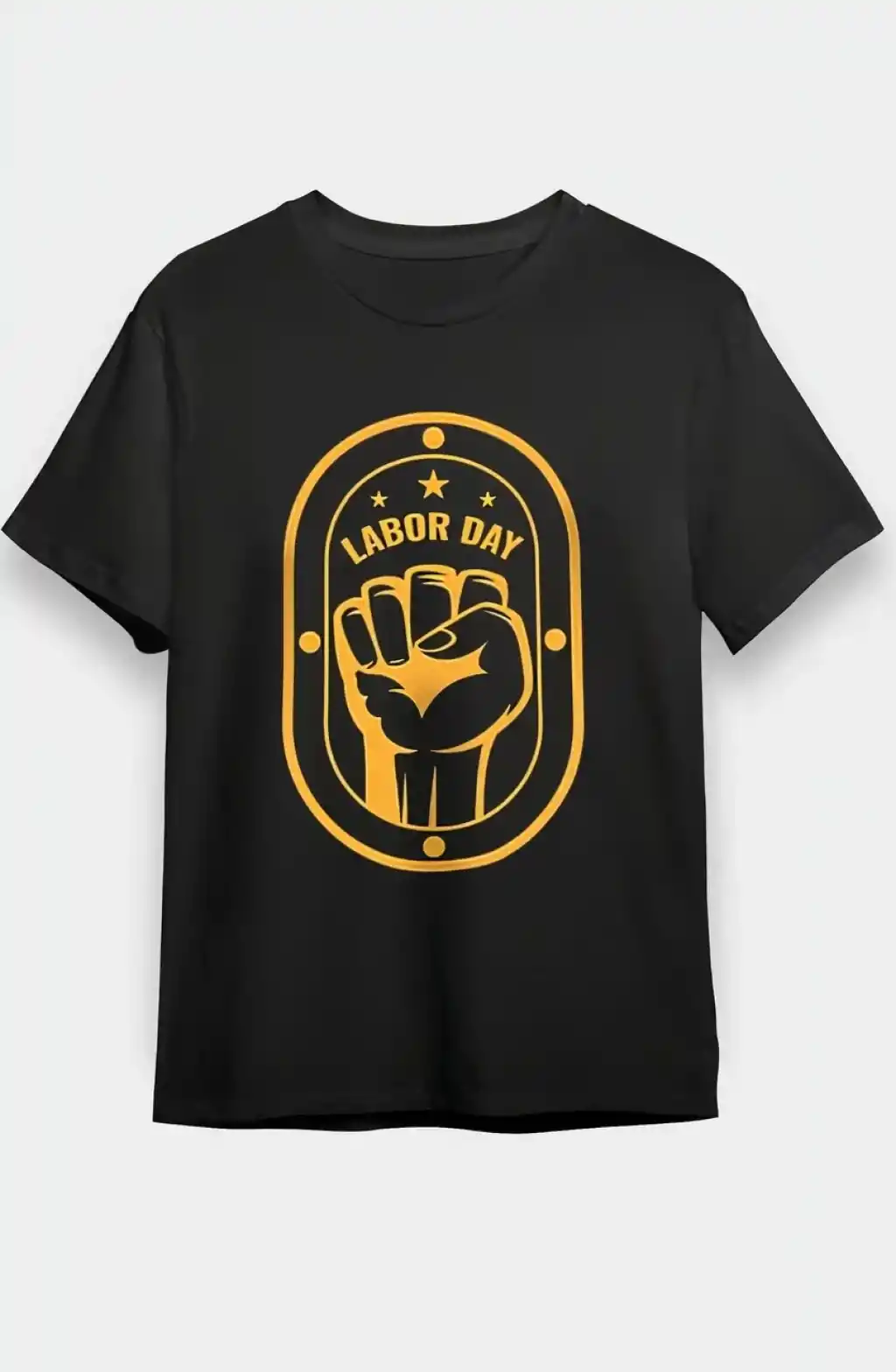 1 Mayıs Emekçilerimiz İçin Özel Tasarım LABOR DAY Baskılı T-shirt - Siyah