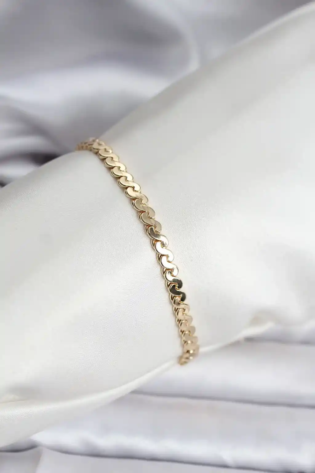 14K Gold Renk Kaplama Ezme Yılan Zincir Model CM Kadın Bileklik