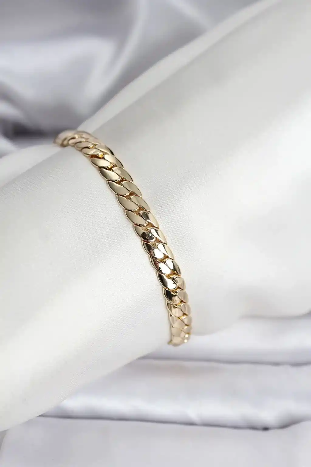 14K Gold Renk Kaplama Ezme Zincir Model Kadın Bileklik