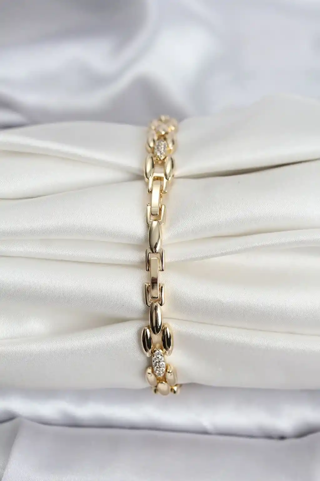 14K Gold Renk Kaplama Zirkon Taşlı Model CM Kadın Bileklik