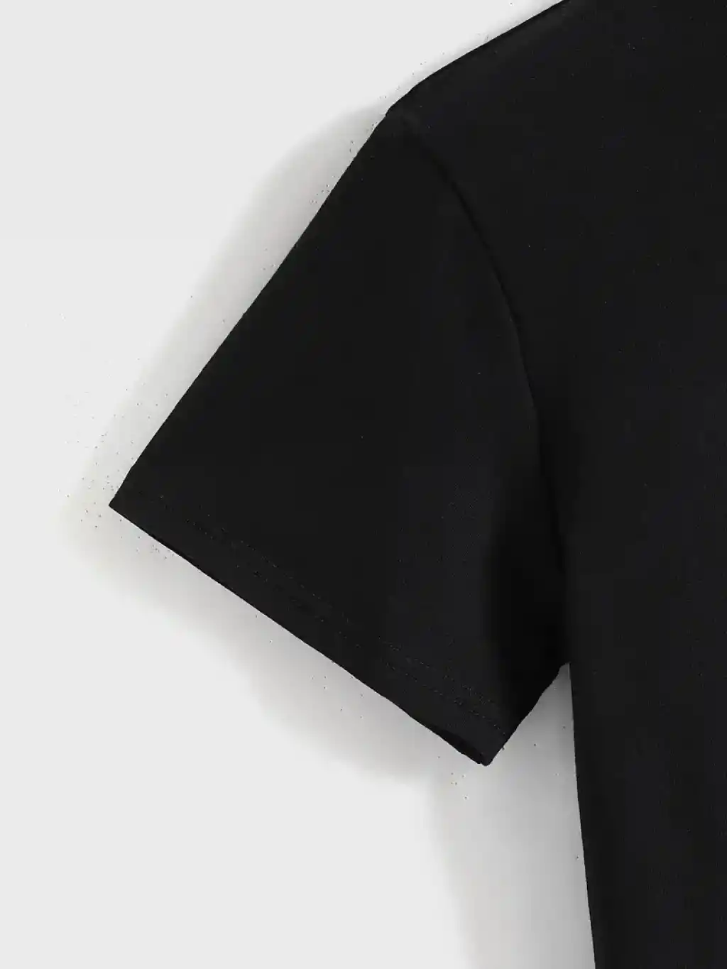 20/1 Penye Compack Baskılı Oversize Kısa Kol Bisiklet Yaka T-shirt - Siyah