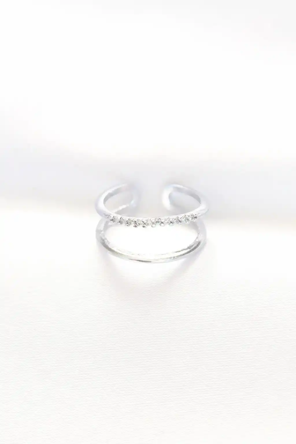 2li Görünümlü Su Yolu Tasarımlı Silver Renk Ayarlanabilir Yüzük