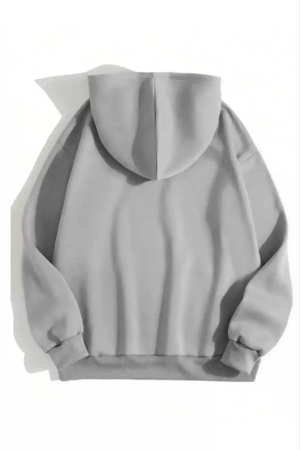 3 İplik Pamuklu Unisex Kapşonlu Sweetshirt - Gri