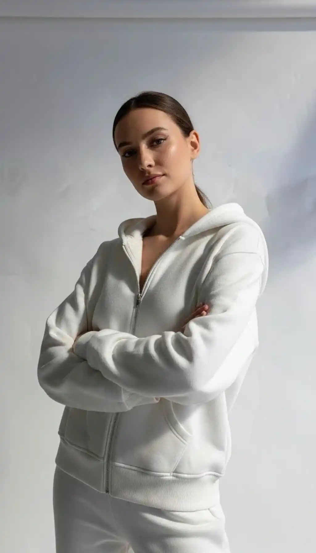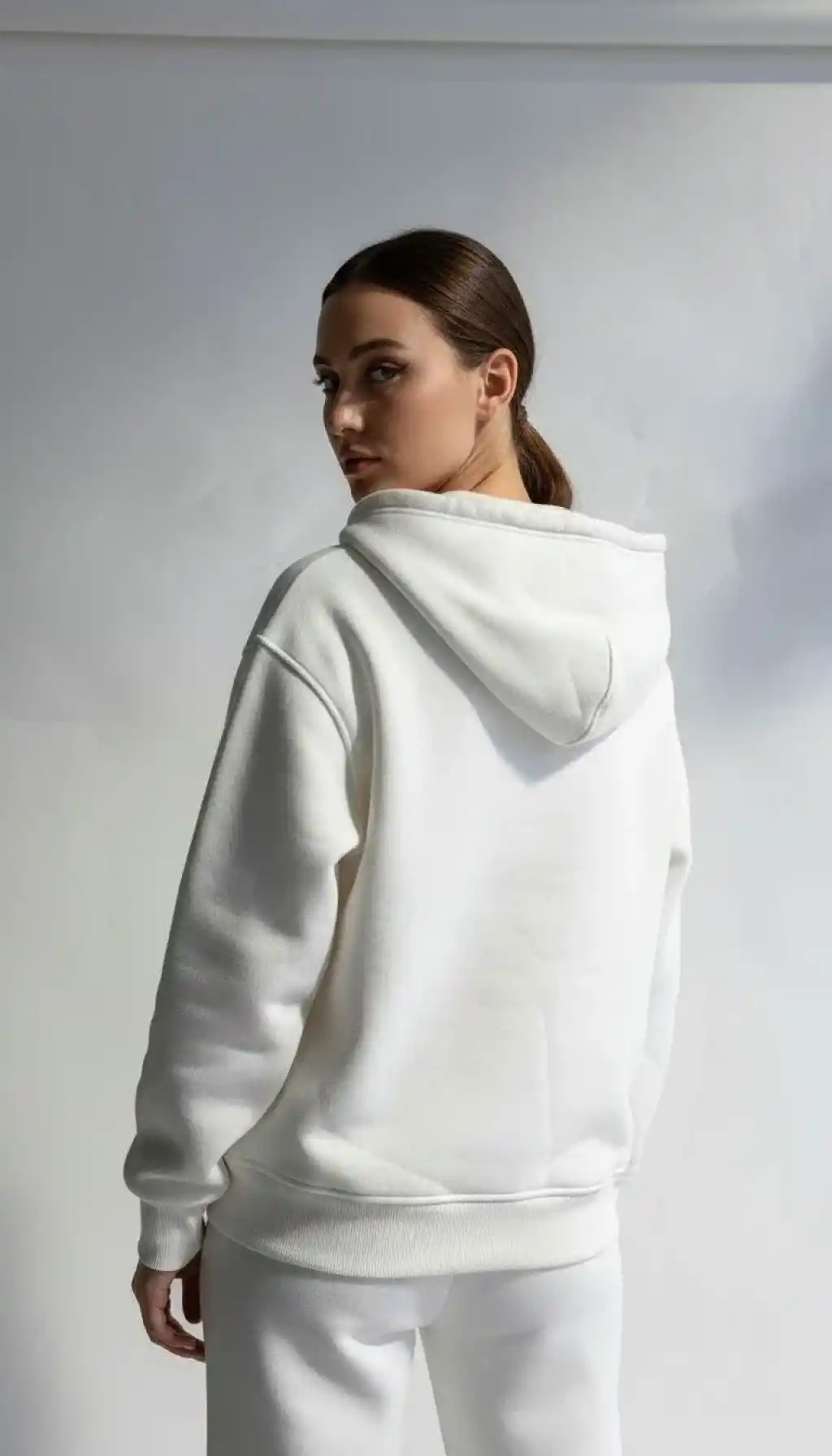 3 iplik şardonlu kapşonlu hoodie frm beyaz p510437