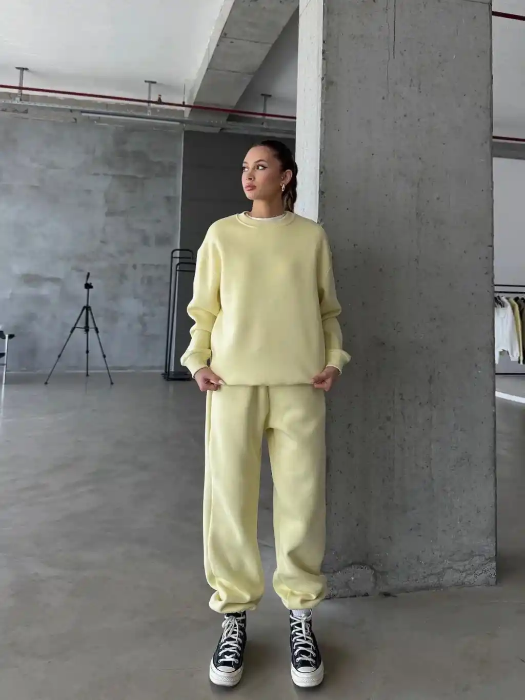 3 iplik şardonlu Lastik paça eşofman sarı p510439
