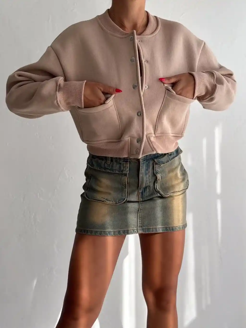 3 iplik şardonlu Önü çıtçıtlı cepli ceket bej f2226, kadın giyim kategorisinde şıklık ve rahatlık arayanlar için ideal bir seçenektir.