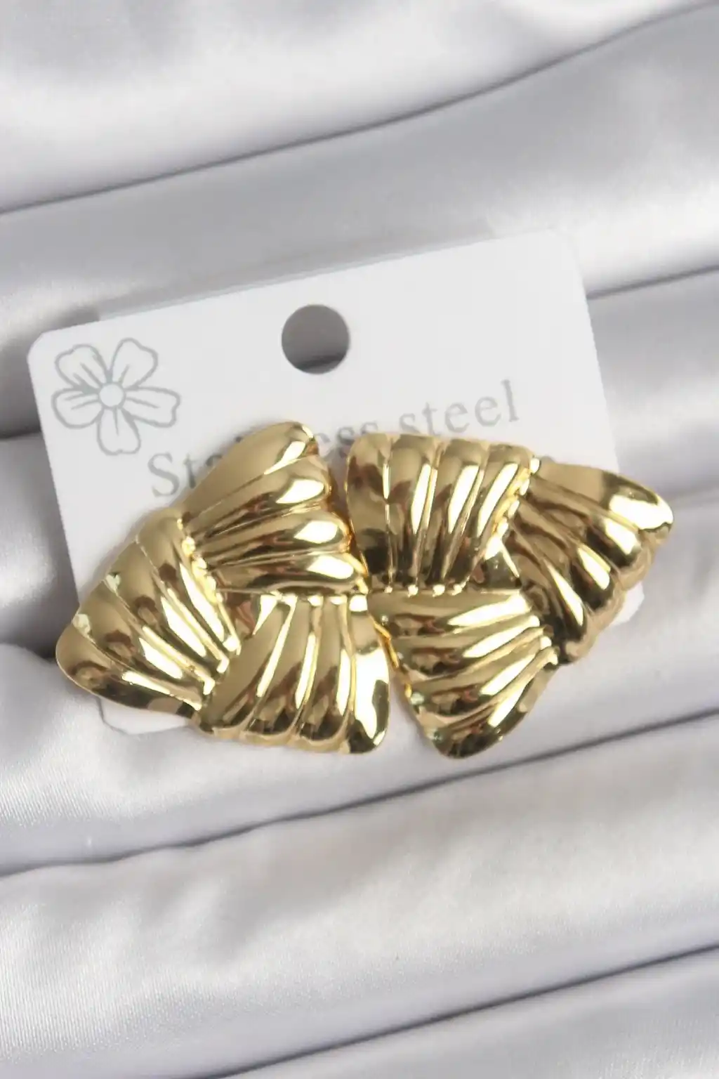 316 Çelik Gold Renk İşlemeli Üçgen Model Kadın Küpe
