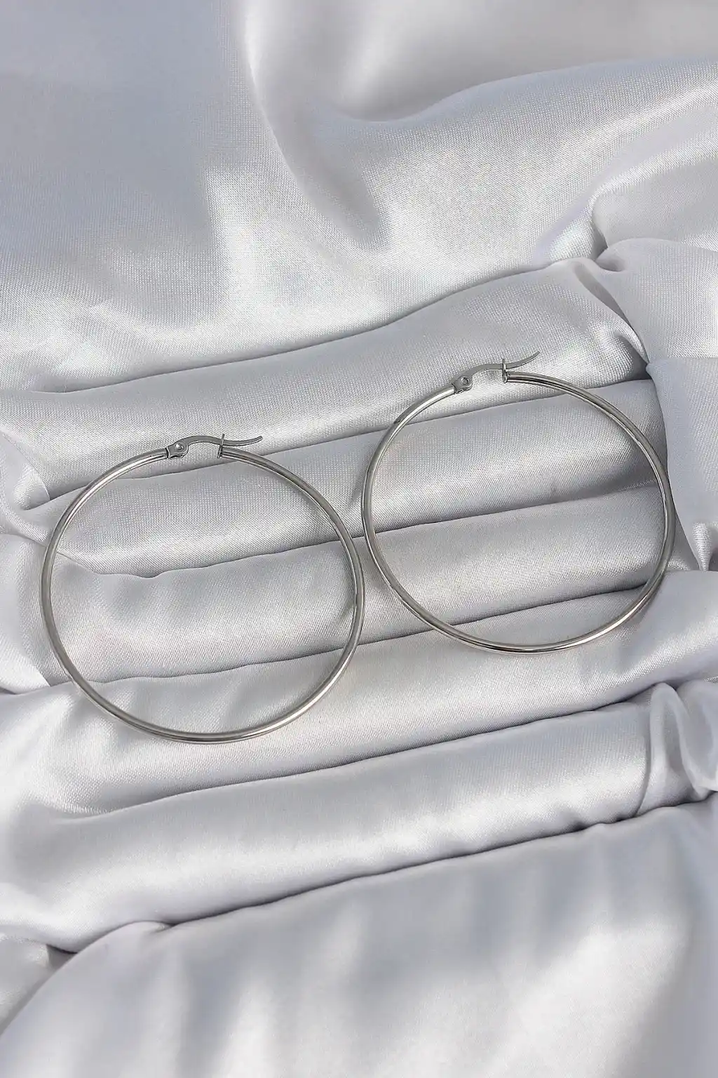 316 Çelik Gümüş Renk 53 mm Halka Model Kadın Küpe