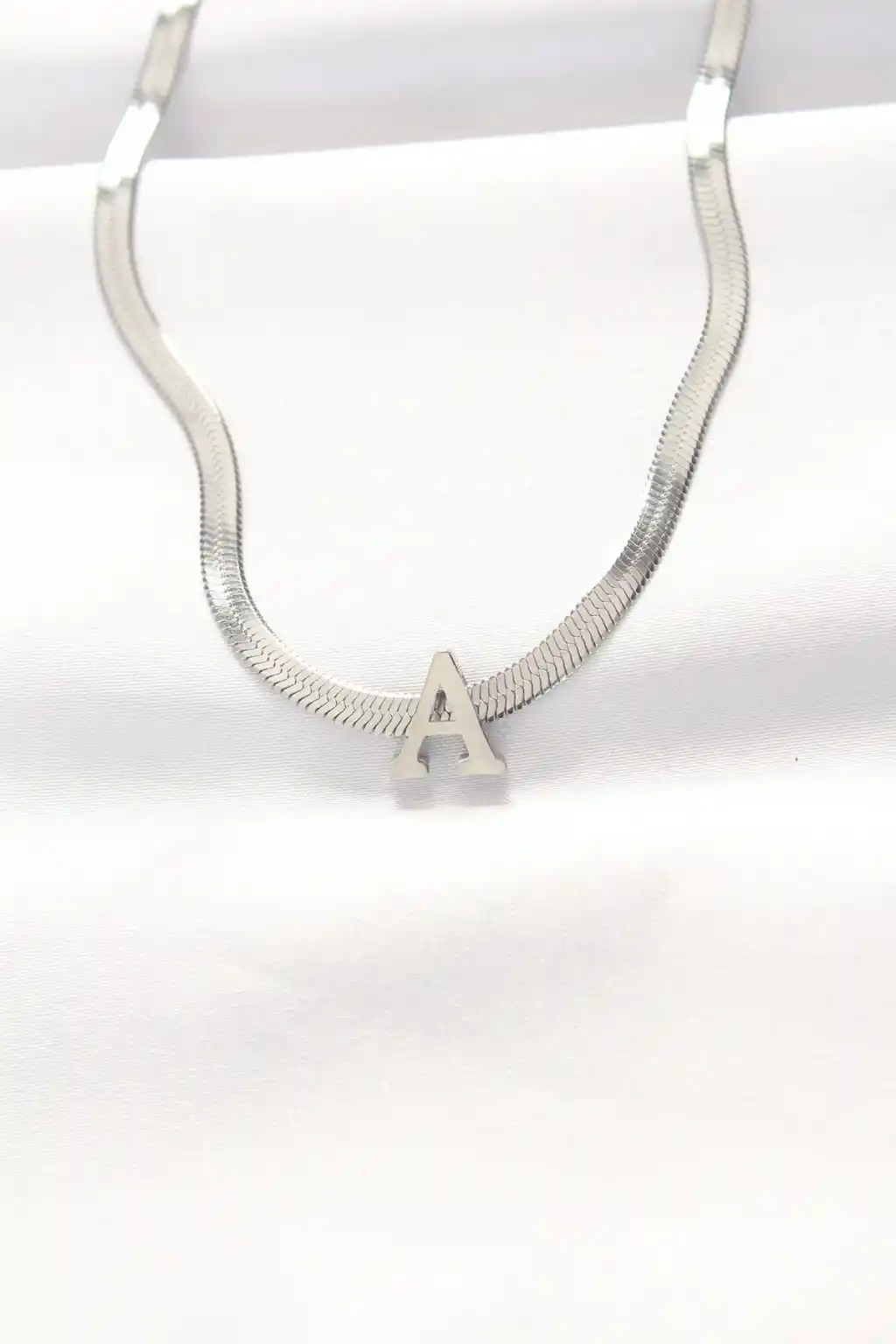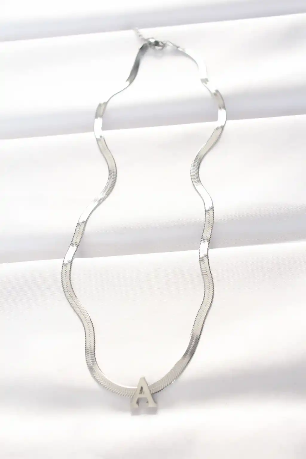 316L Çelik A Harfli Silver Renk İtalyan Zincirli Kolye