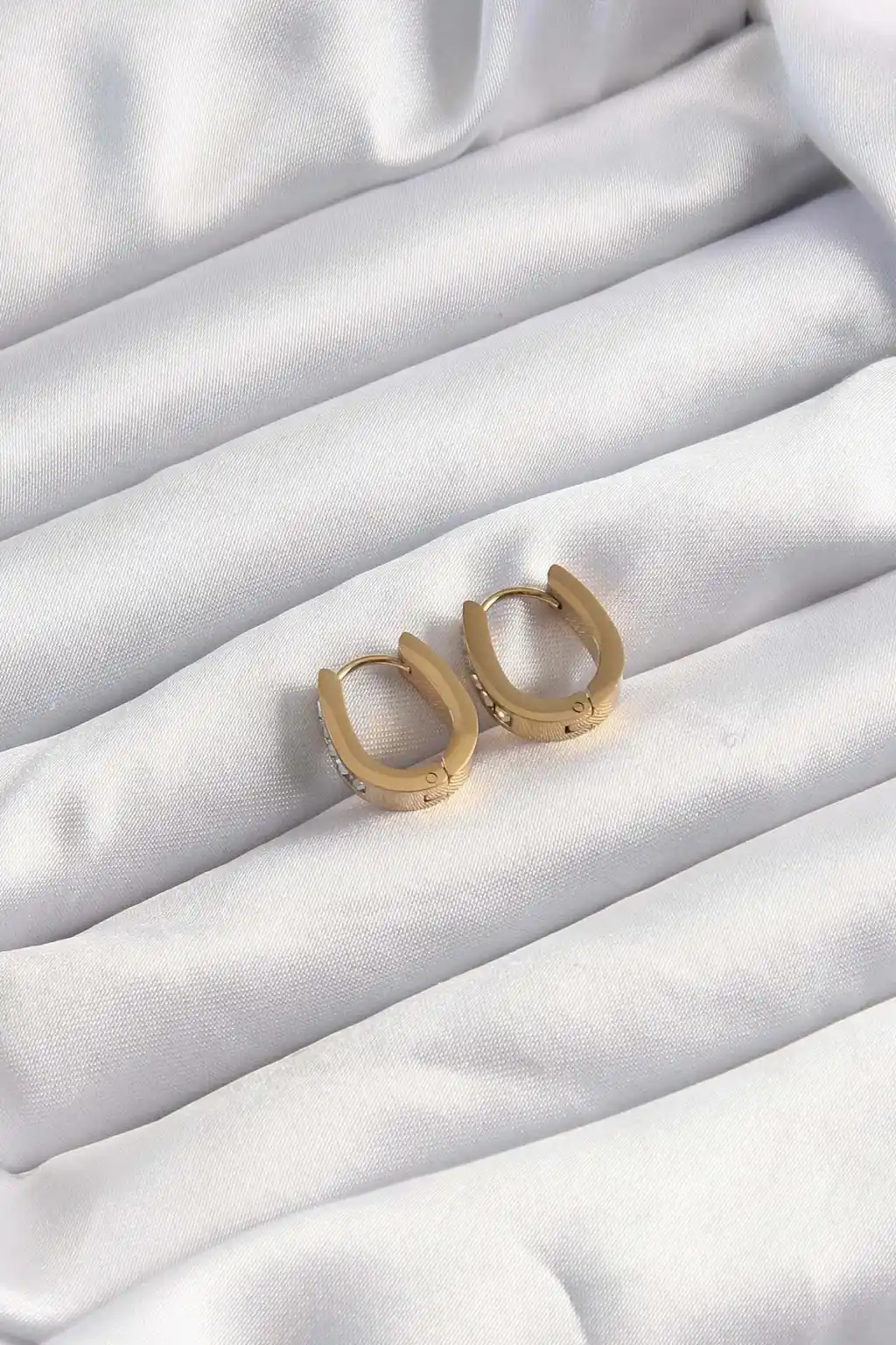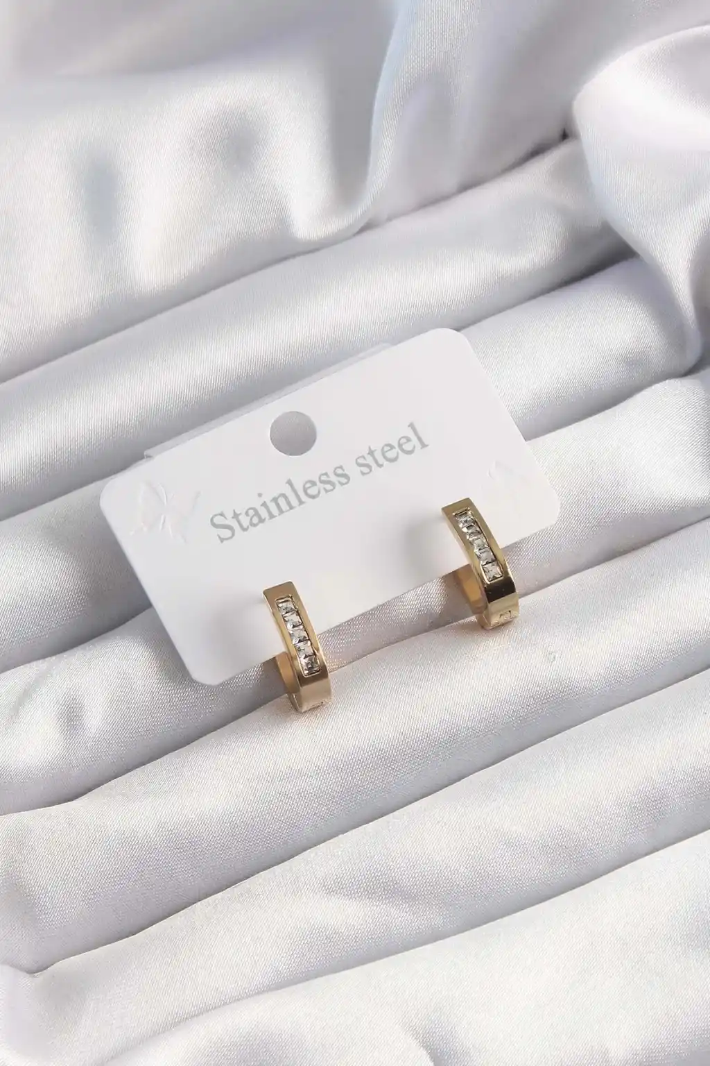 316L Çelik Altın Renk Zirkon Taşlı Halka Model Küpe