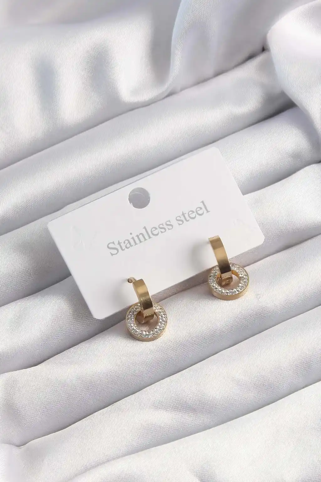 316L Çelik Altın Renk Zirkon Taşlı Halka Model Küpe
