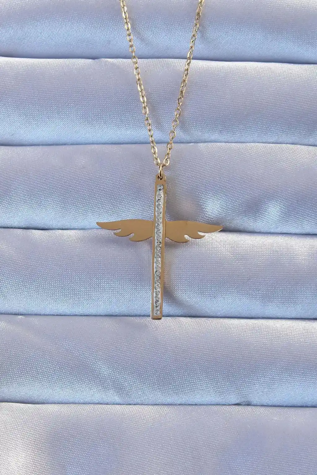 316L Çelik Altın Renk Zirkon Taşlı Mikail Kolye