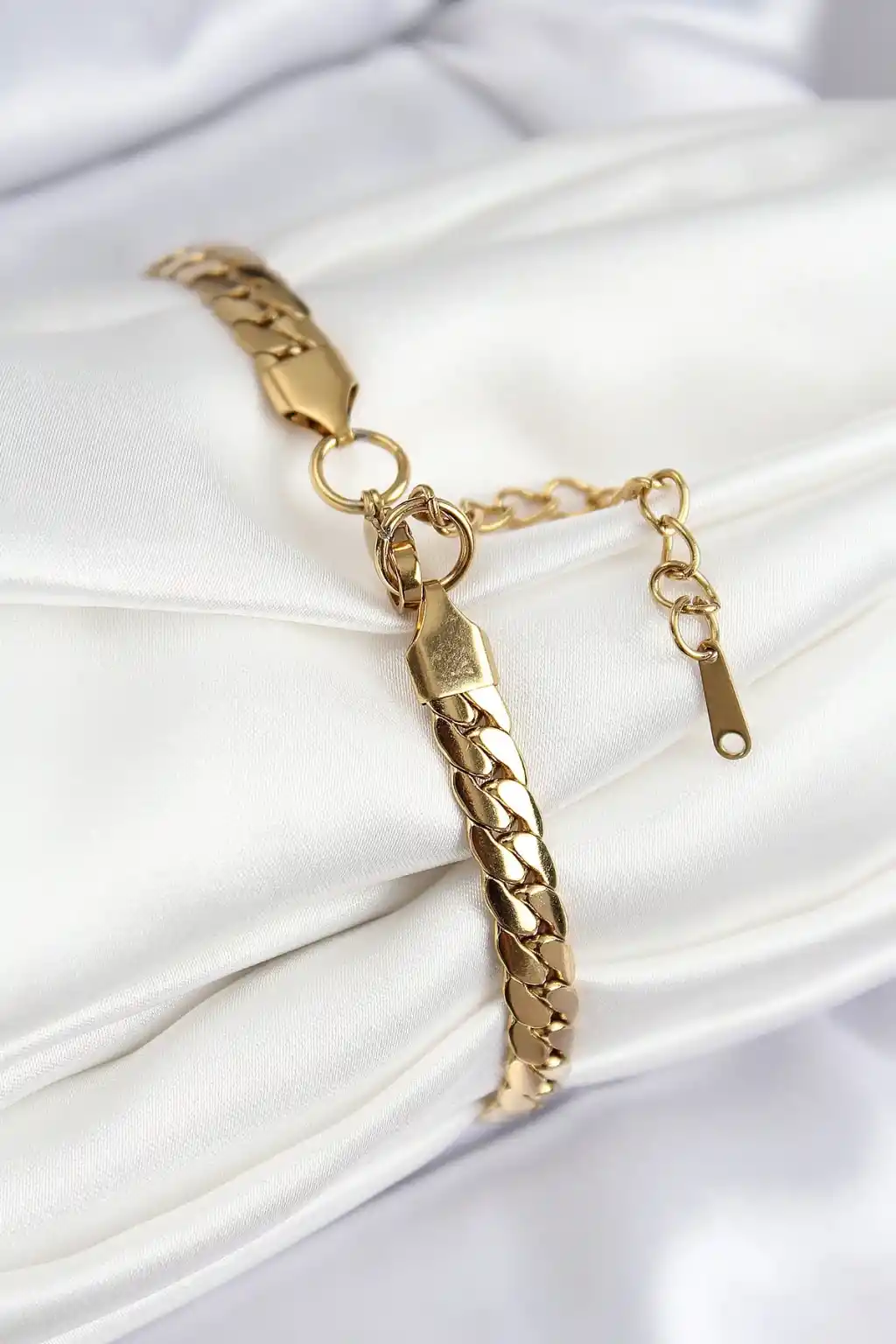 316L Çelik Ezme Zincir Model Gold Renk Kadın Bileklik