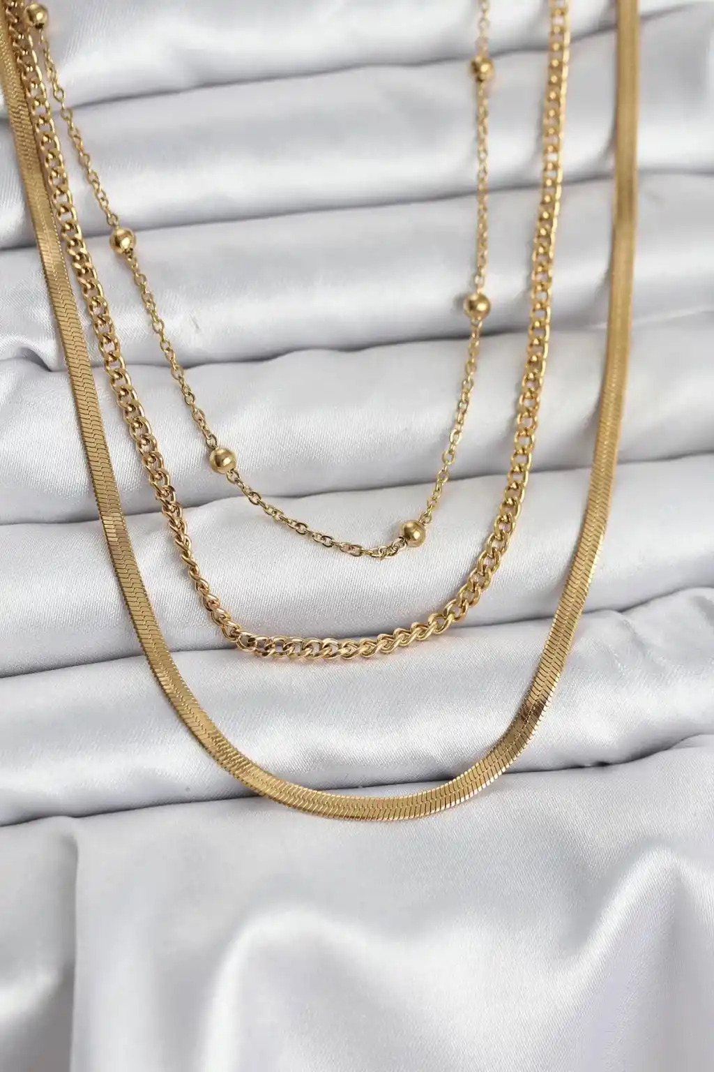 316L Çelik Gold Renk 3'lü Kadın Kolye