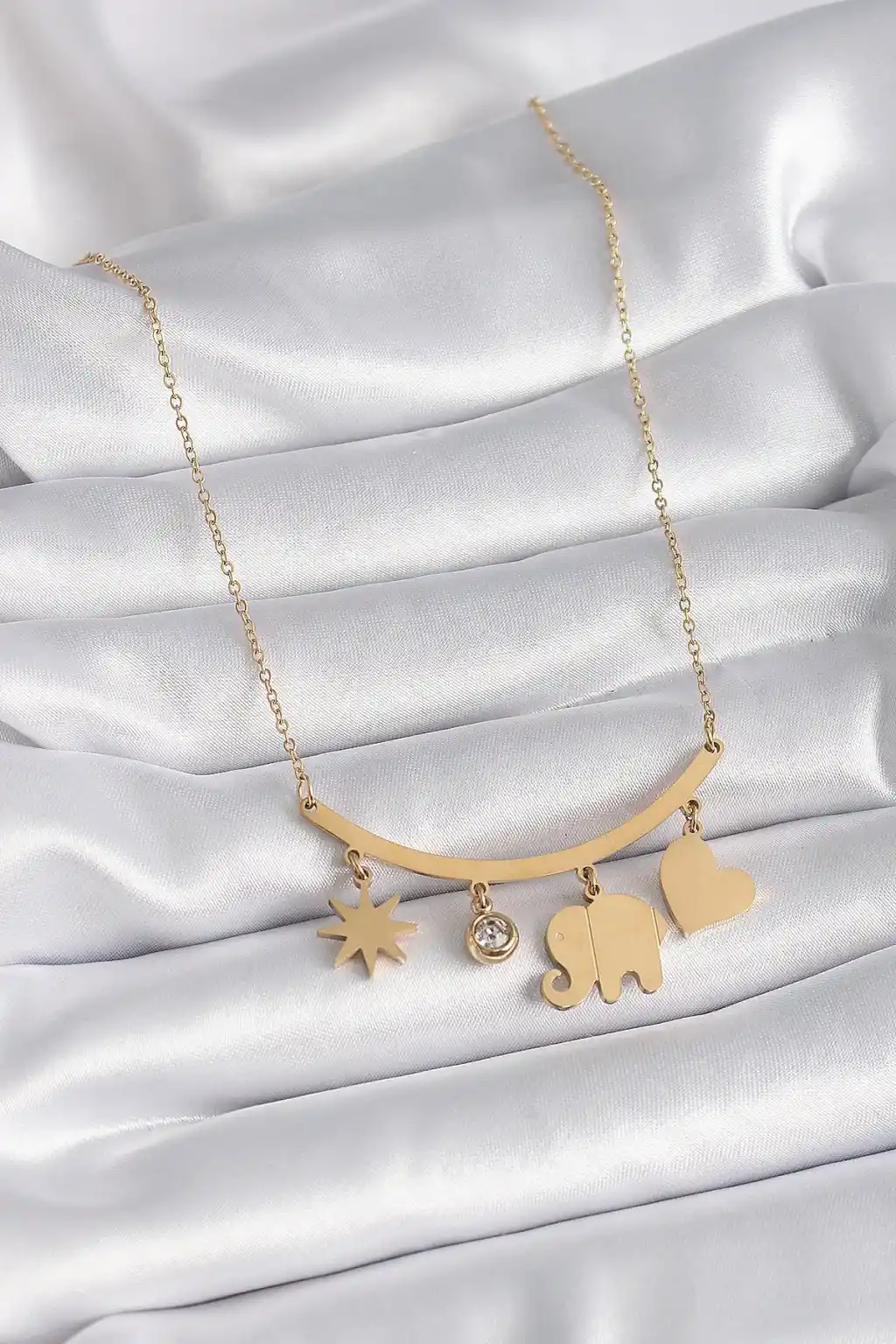 316L Çelik Gold Renk Fil Figür Zirkon Taş Detay Kadın Kolye