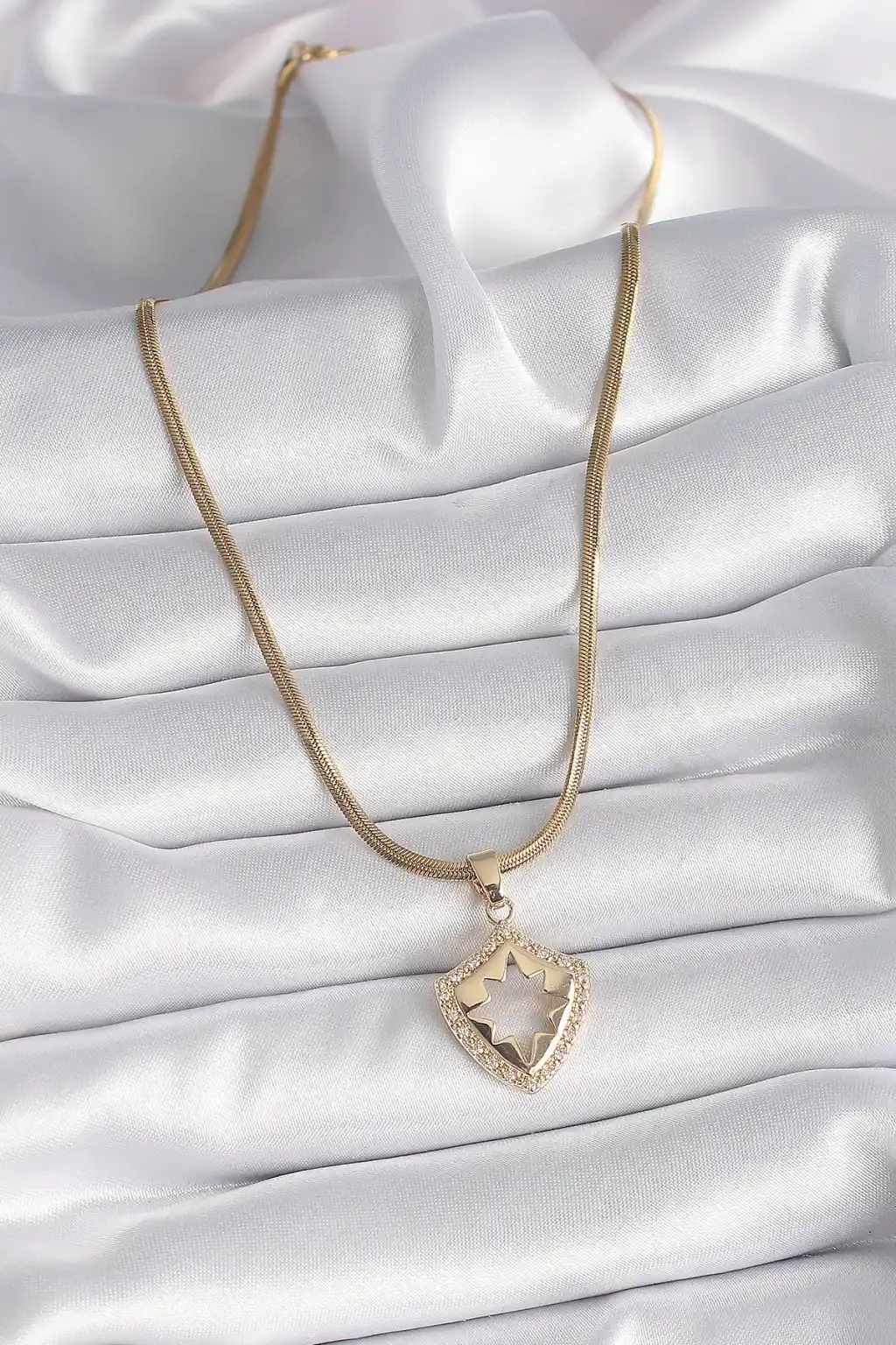316L Çelik Gold Renk İtalyan Zincir Zirkon Taşlı Kutup Yıldız İşleme Kadın Kolye
