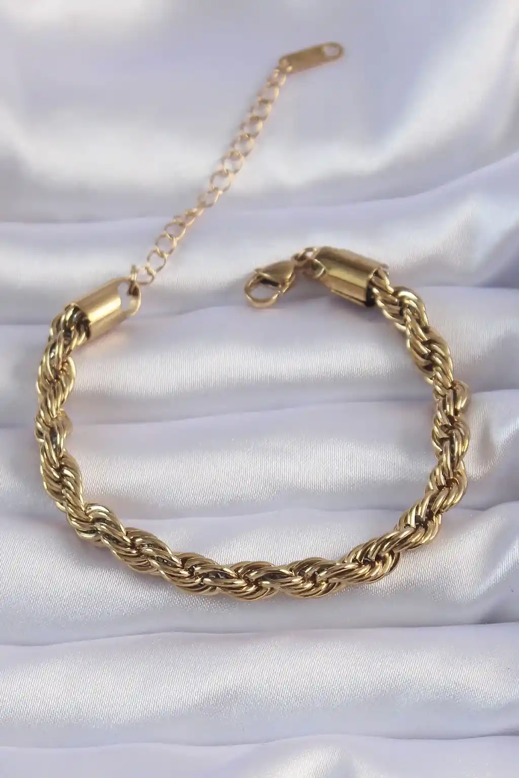 316L Çelik Gold Renk Kalın Burgu Zincir Bileklik