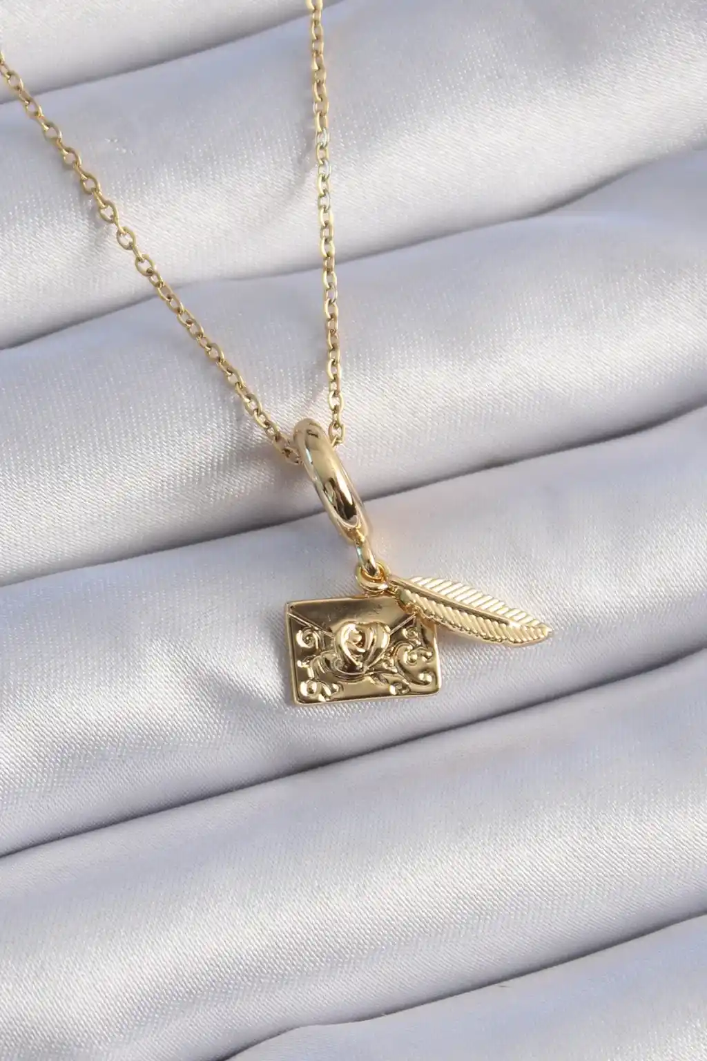 316L Çelik Gold Renk Kalp Detay Mektup Figür Charm Model Kadın Kolye