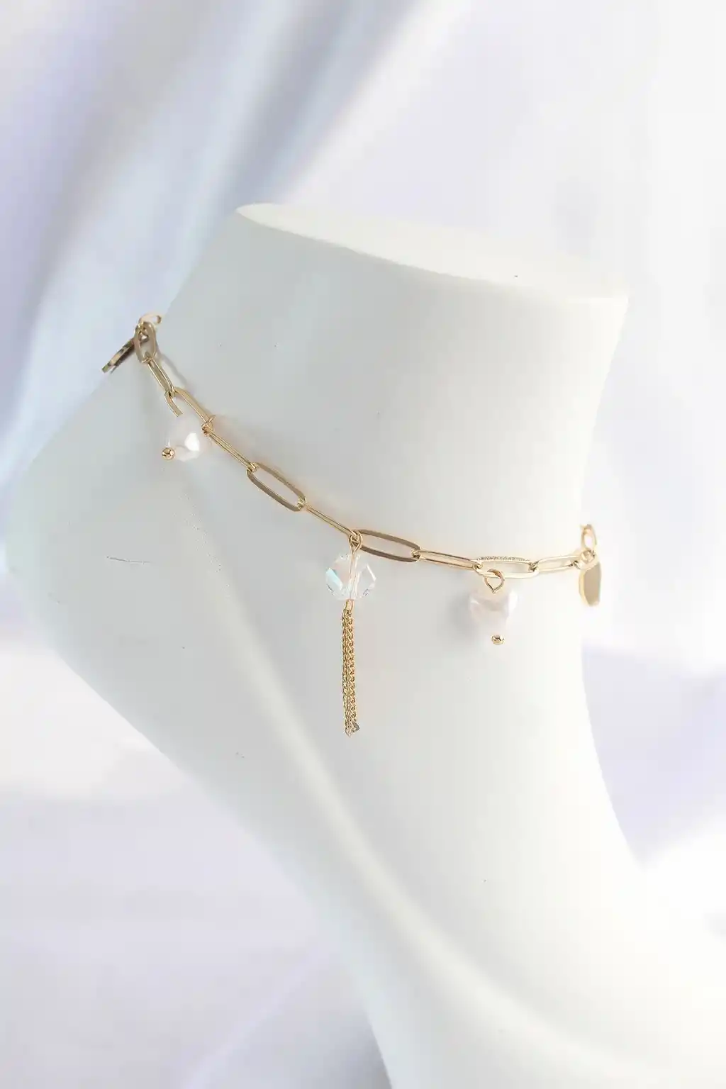 316L Çelik Gold Renk Kalp Detaylı Sallantılı Halhal