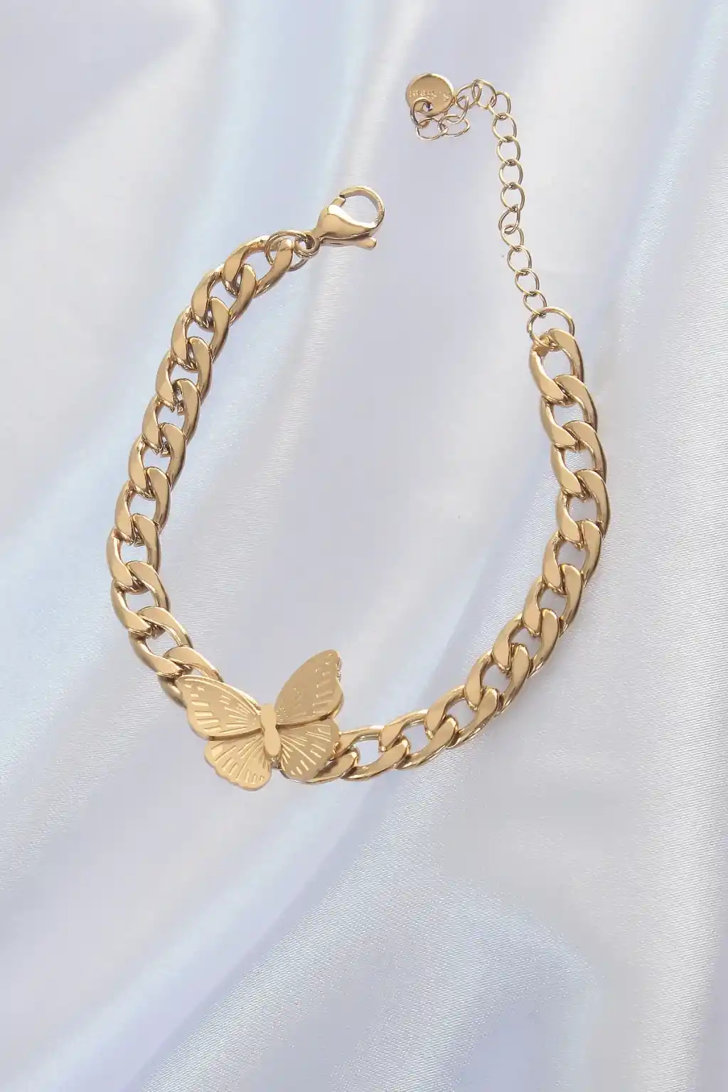 316L Çelik Gold Renk Kelebek Figür İşleme Detay Zincir Model Kadın Bileklik