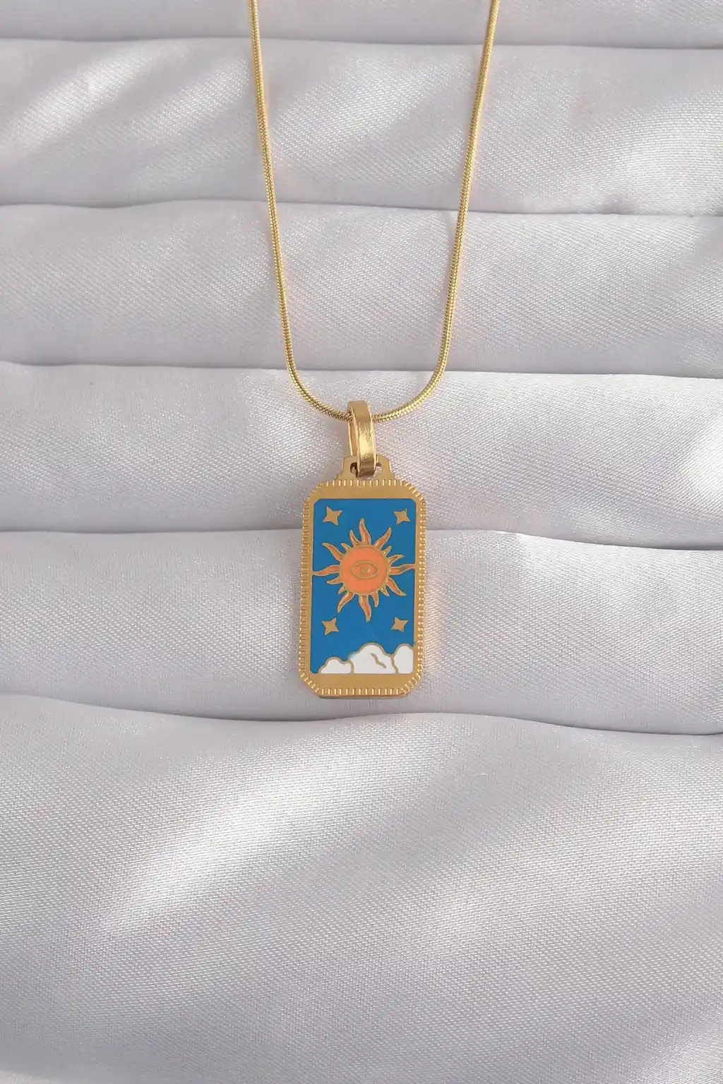 316L Çelik Gold Renk Mavi Mineli Güneş Model Tarot Kolye