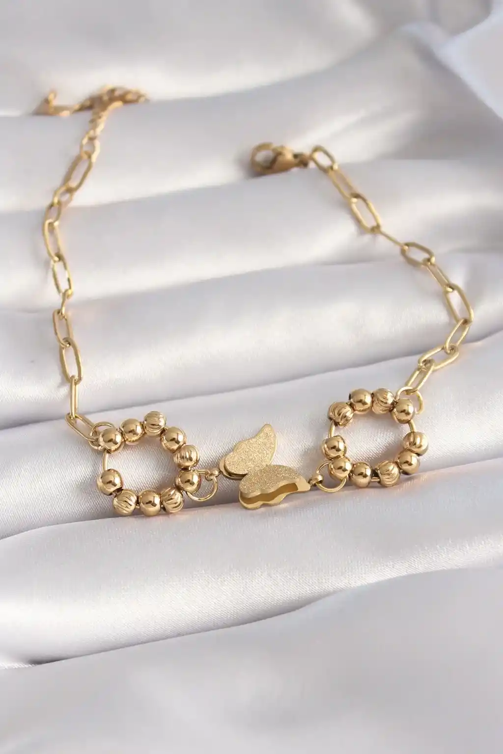 316L Çelik Gold Renk Simli Kelebek Figür Kadın Bileklik