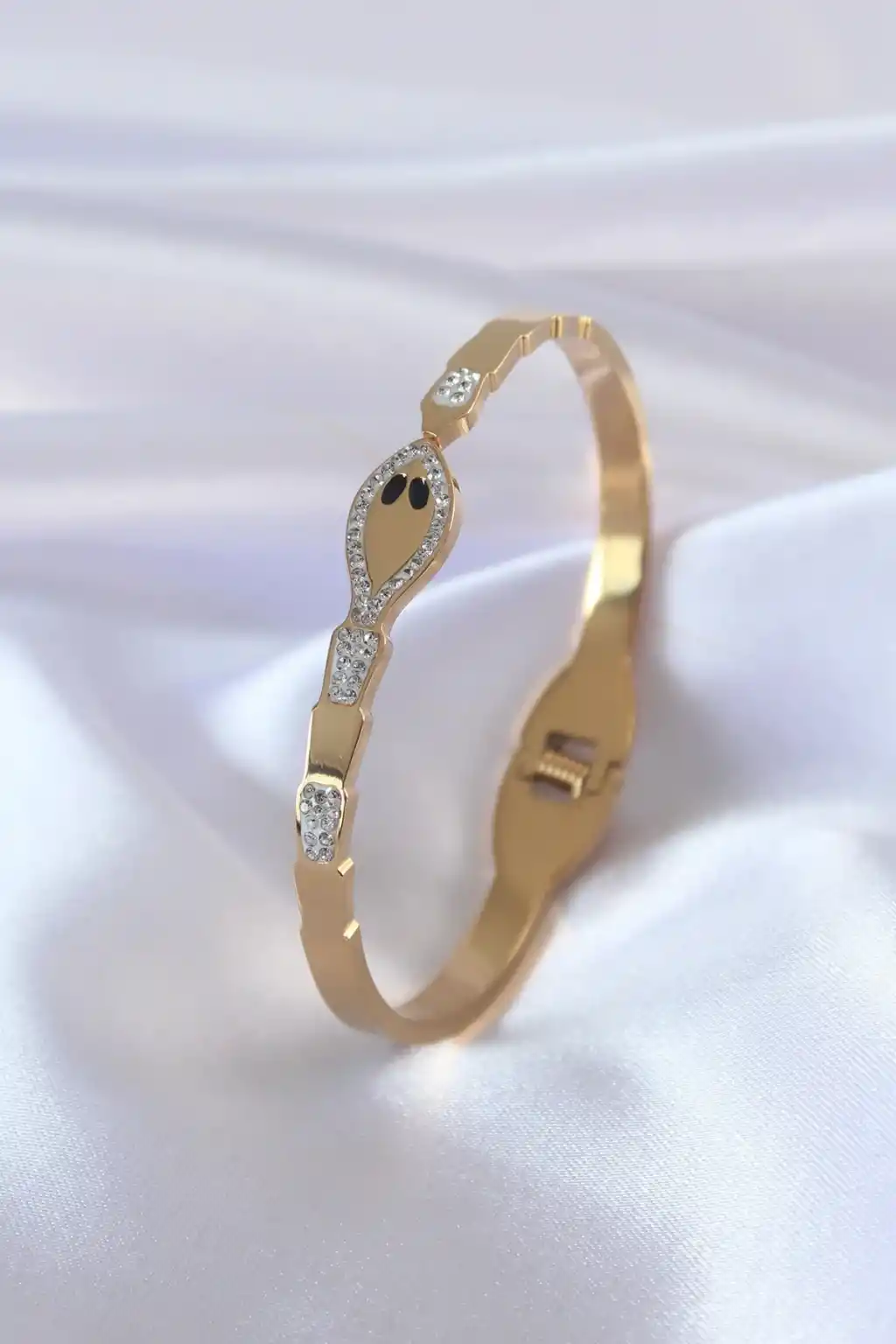 316L Çelik Gold Renk Yılan Model Zirkon Taş Detay Kadın Kelepçe