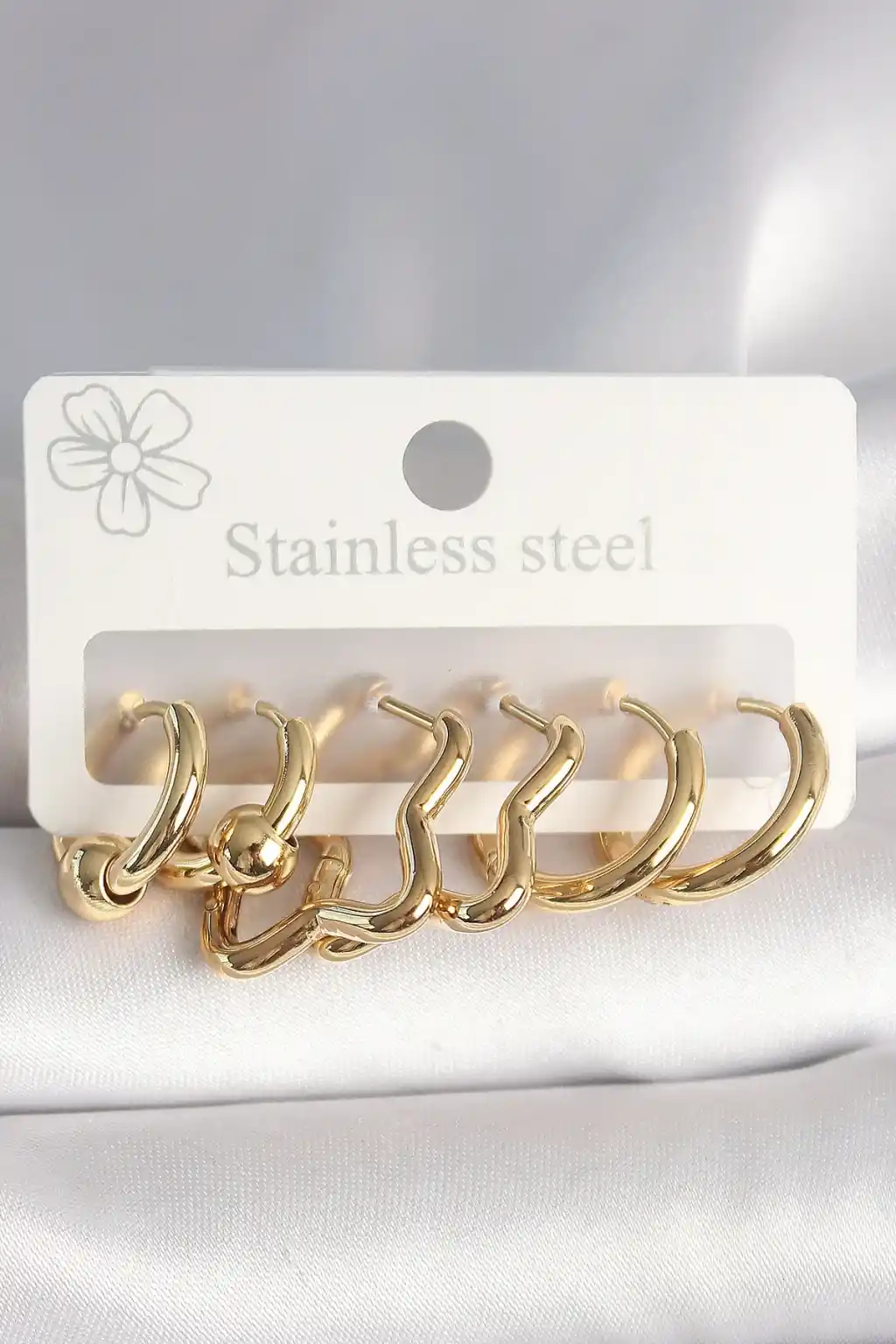 316L Çelik Gold Renk Yıldız Halka Model Kadın Küpe Seti