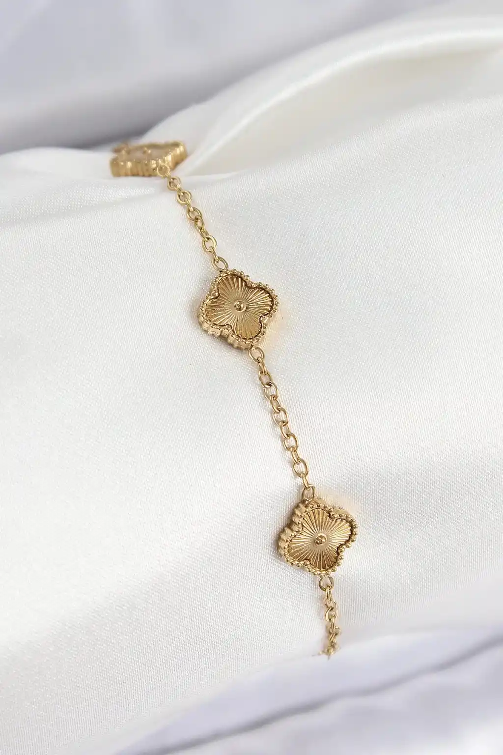 316L Çelik Gold Renk Yonca Kadın Bileklik