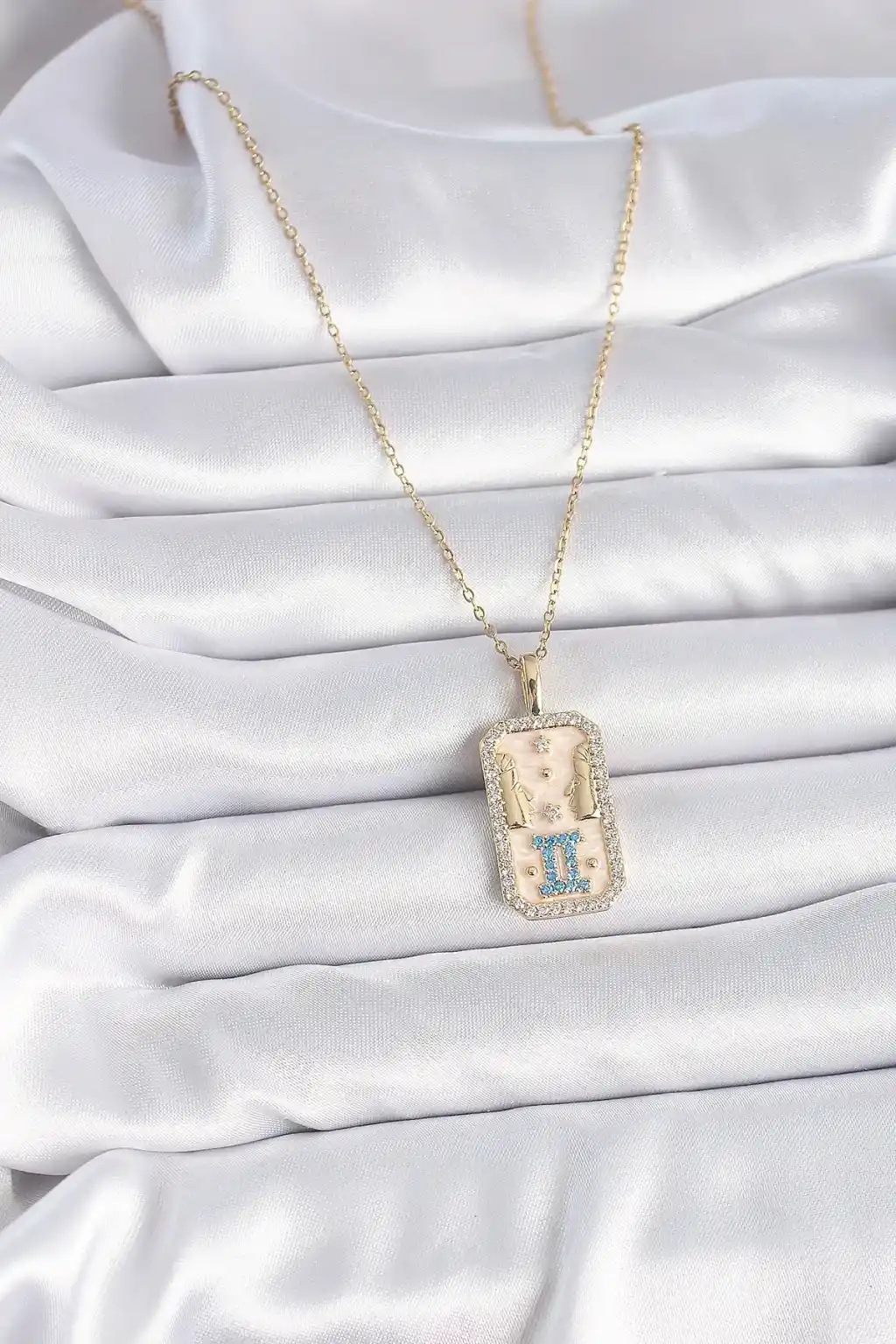 316L Çelik Gold Renk Zincir İkizler Burcu Zirkon Taşlı Kadın Kolye