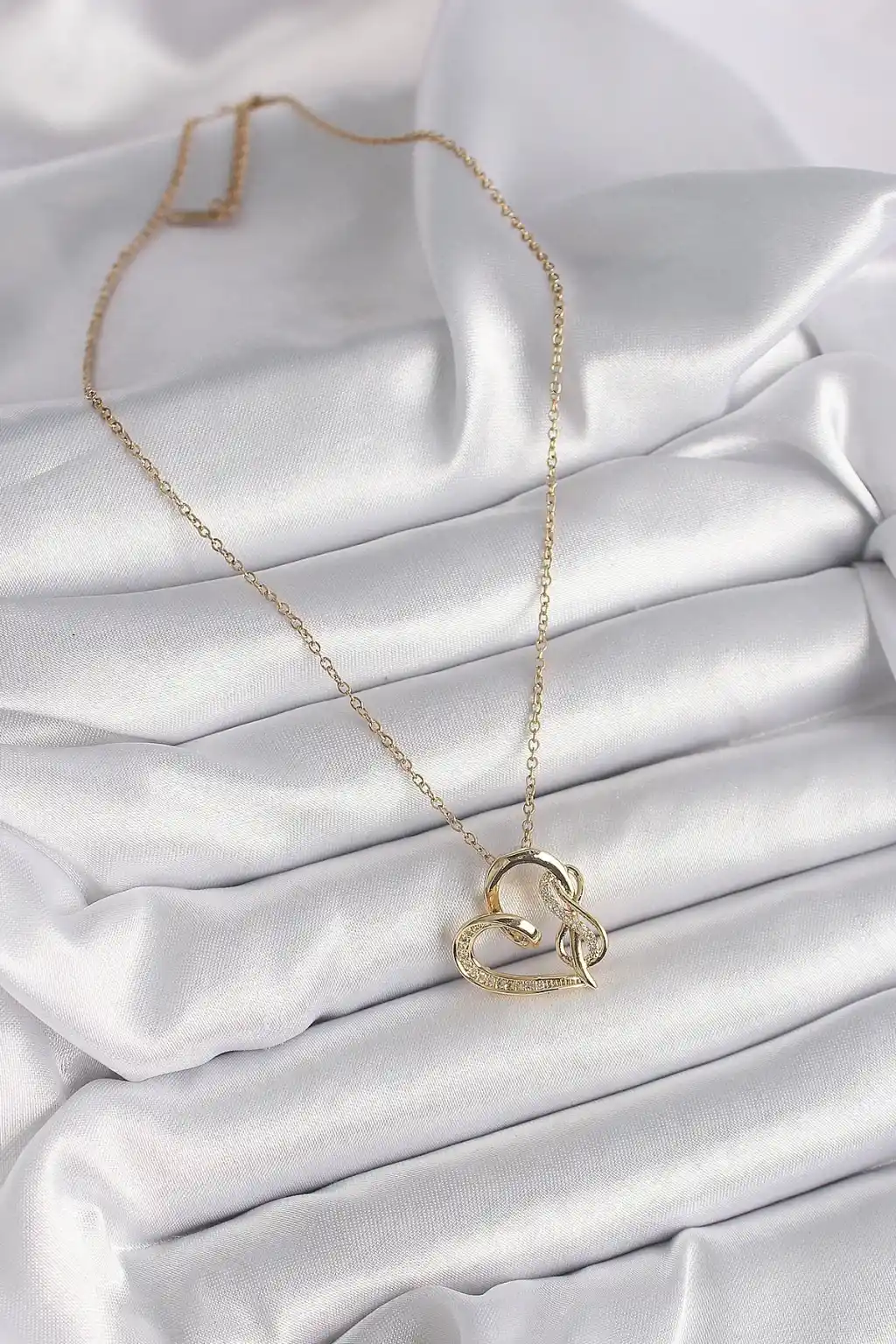 316L Çelik Gold Renk Zincir Zirkon Taş Detaylı Kalp Model Sonsuzluk Detay Kadın Kolye