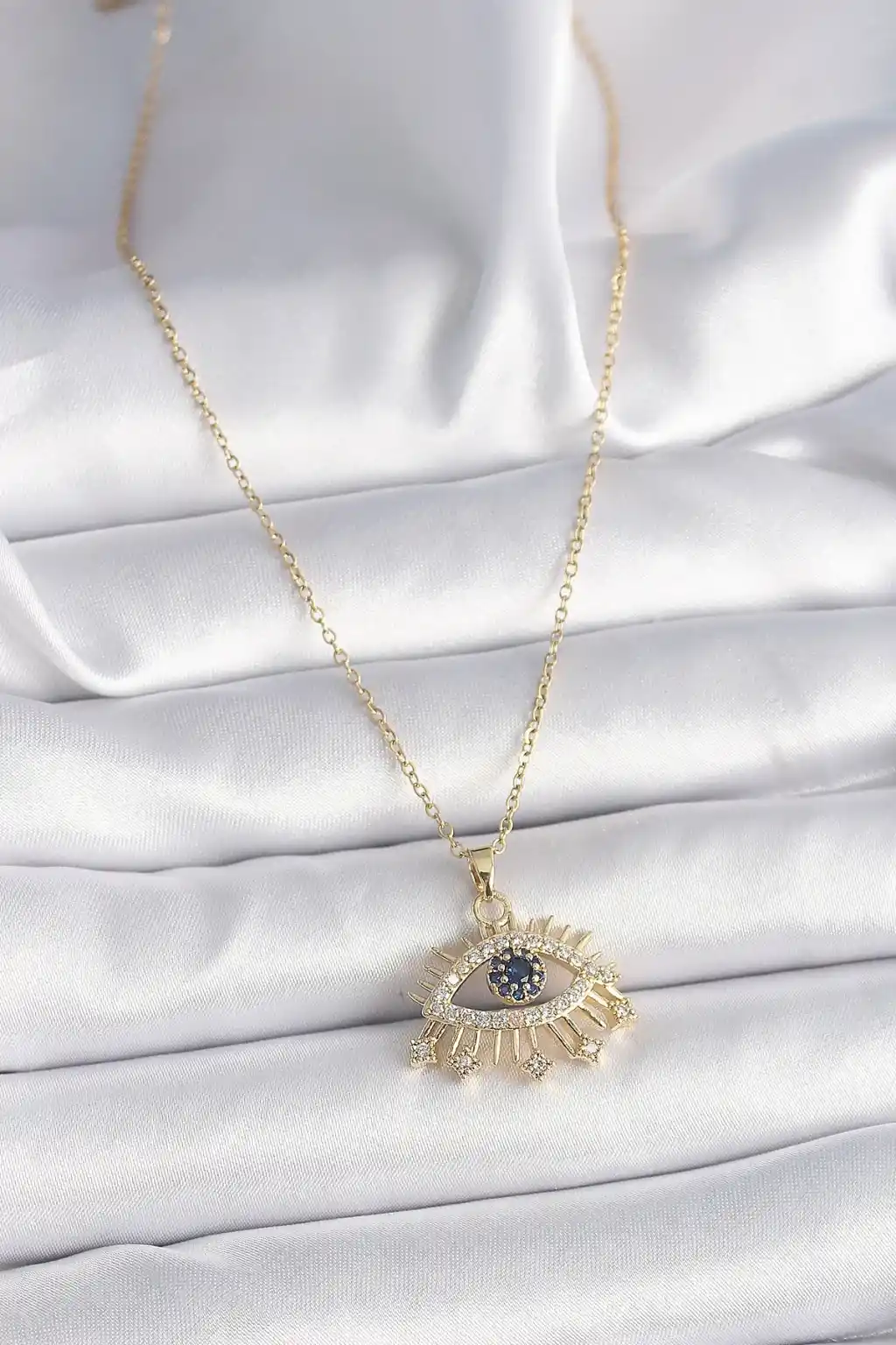 316L Çelik Gold Renk Zincir Zirkon Taşlı Göz Model Kadın Yüzük
