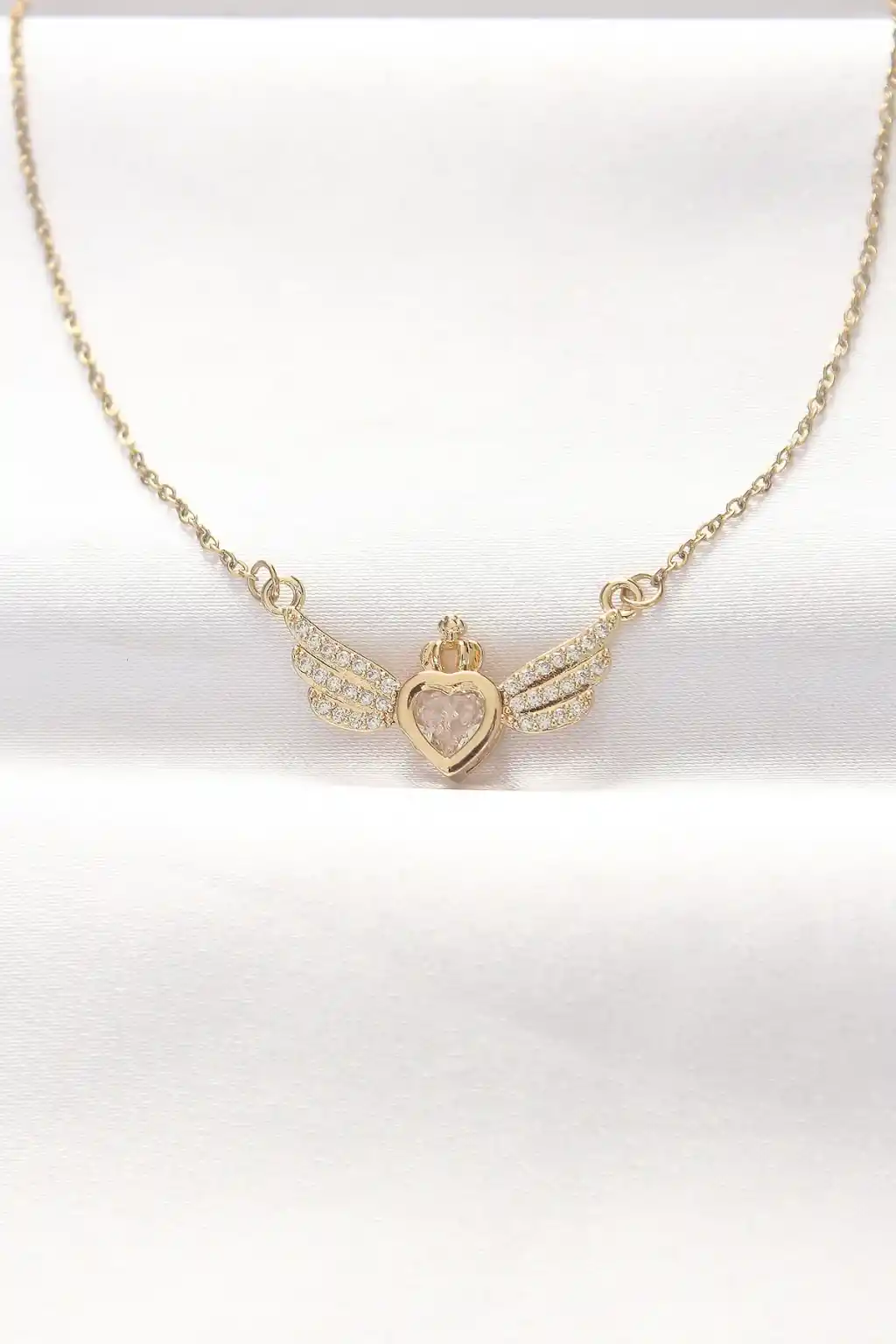 316L Çelik Gold Renk Zirkon Taşlı Kalpli Kanat Kolye