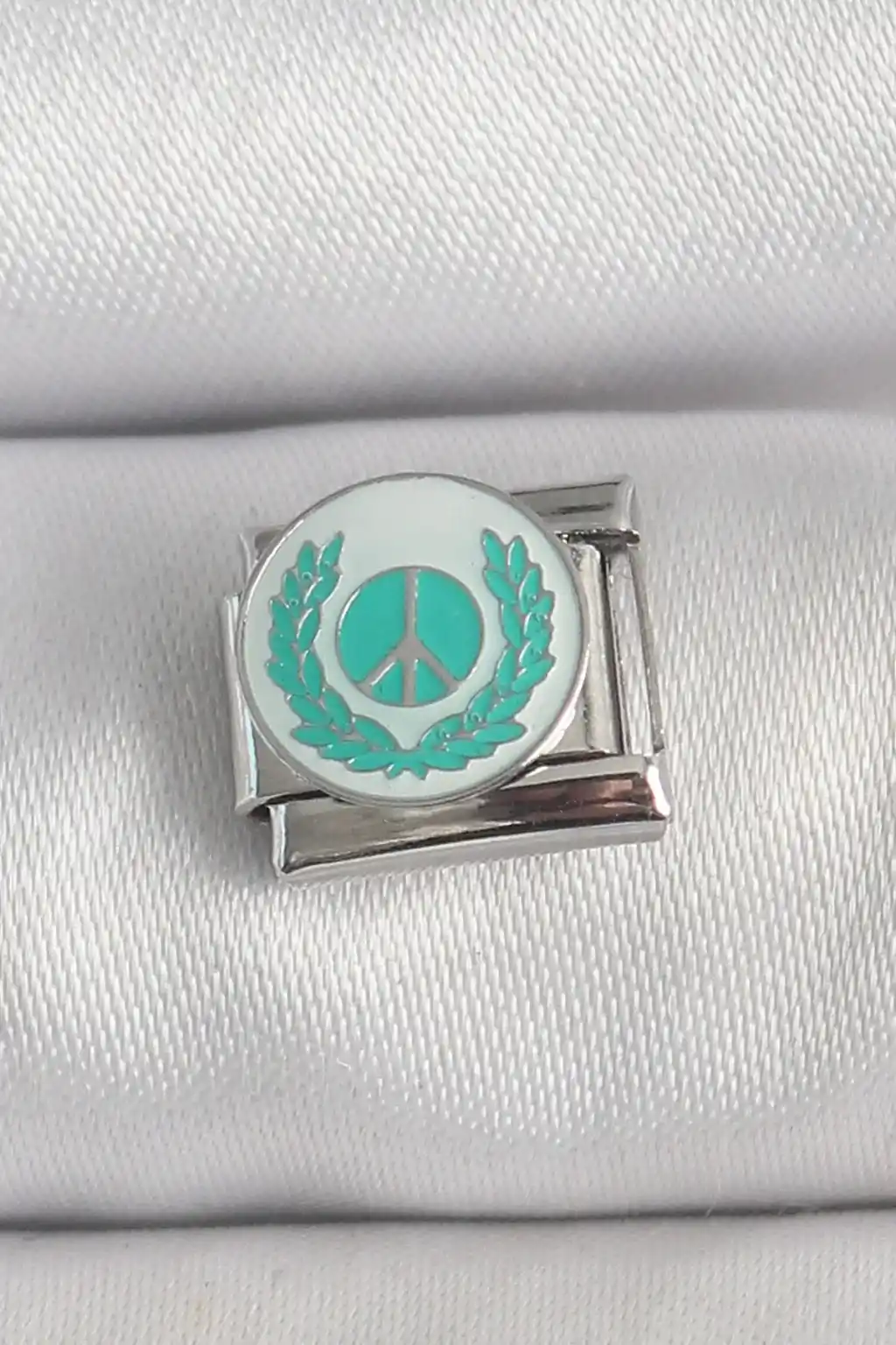 316L Çelik Gümüş Renk Beyaz Mavi Barış İşareti İşlemeli Nomination Charm