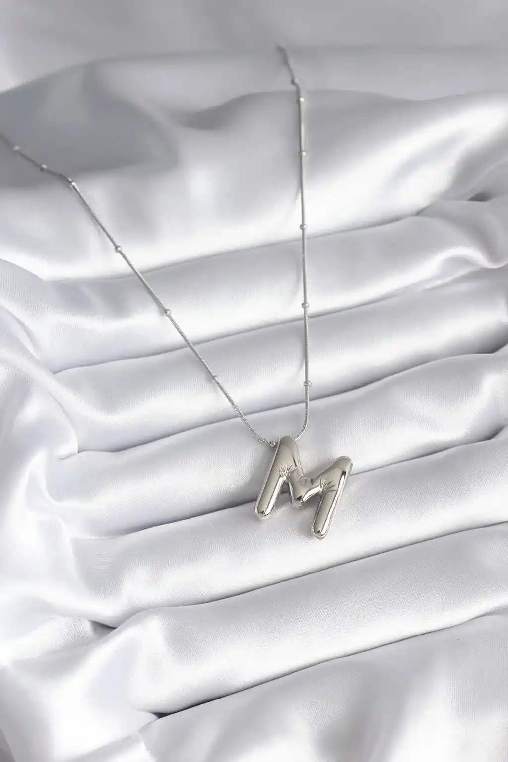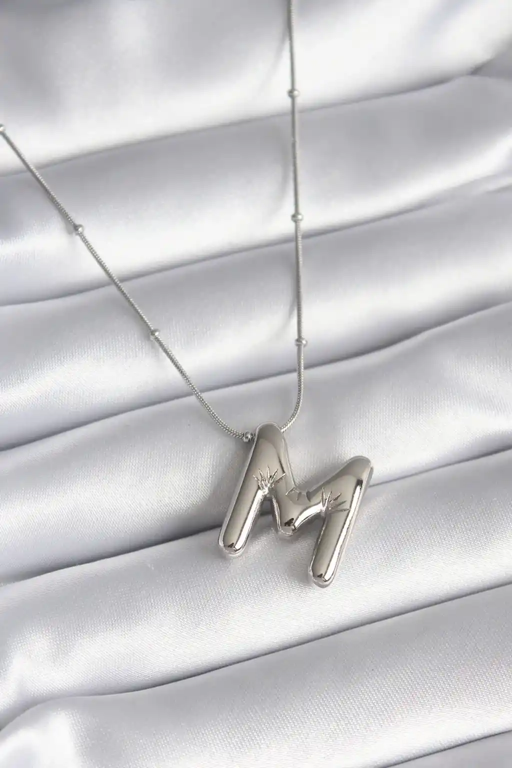 316L Çelik Gümüş Renk Bubble "M" Harf Model Kadın Kolye