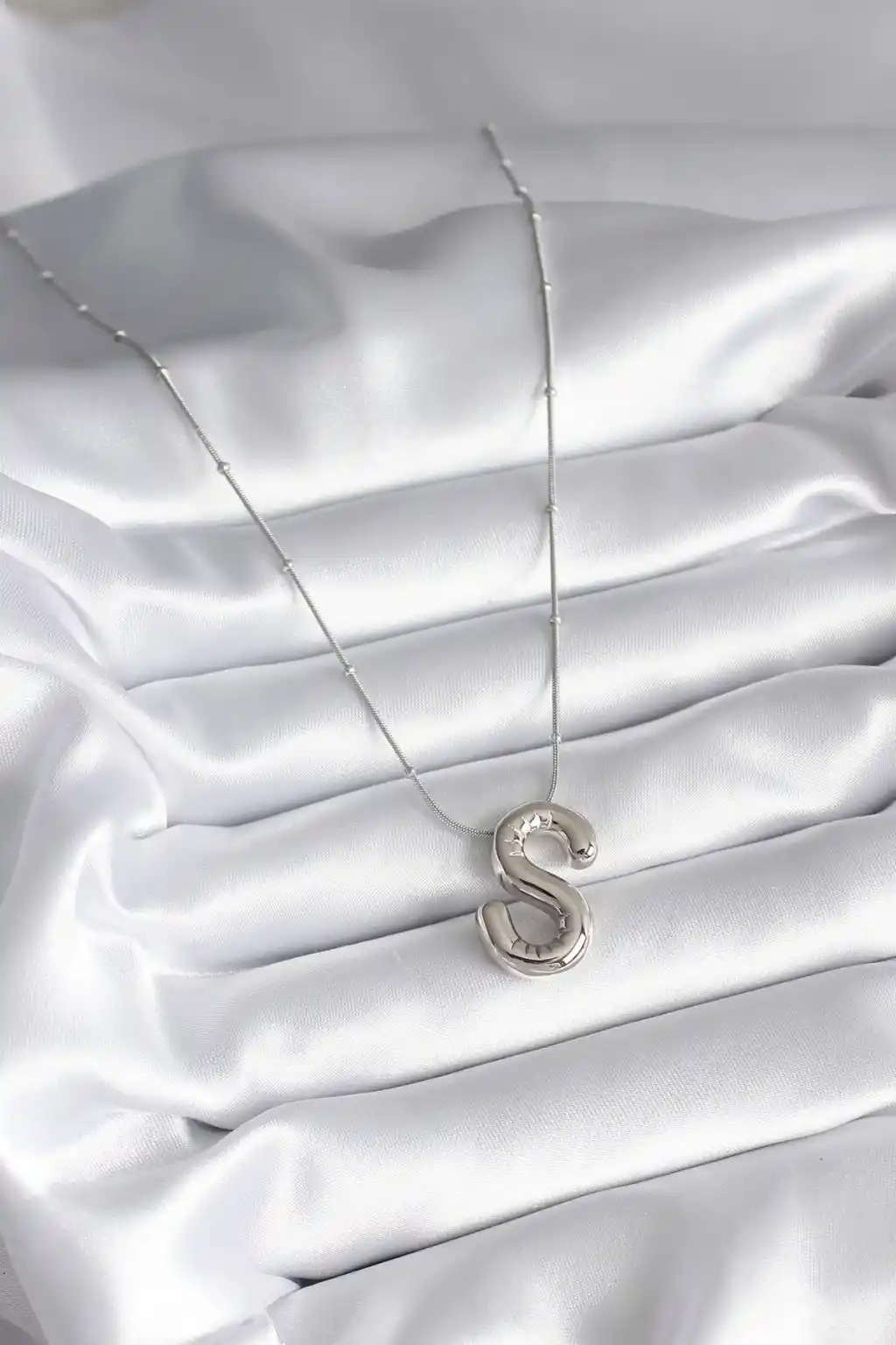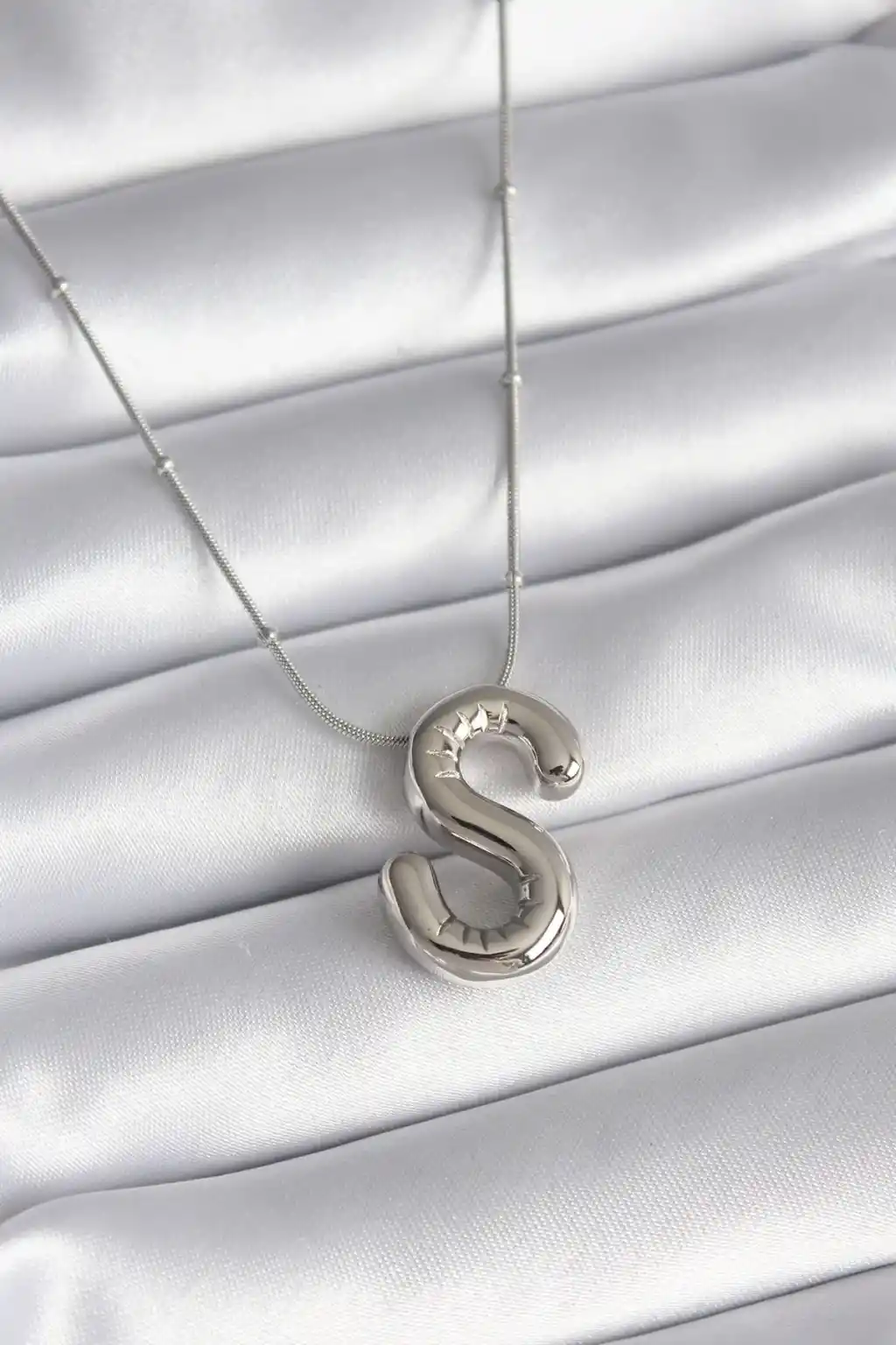 316L Çelik Gümüş Renk Bubble "S" Harf Model Kadın Kolye