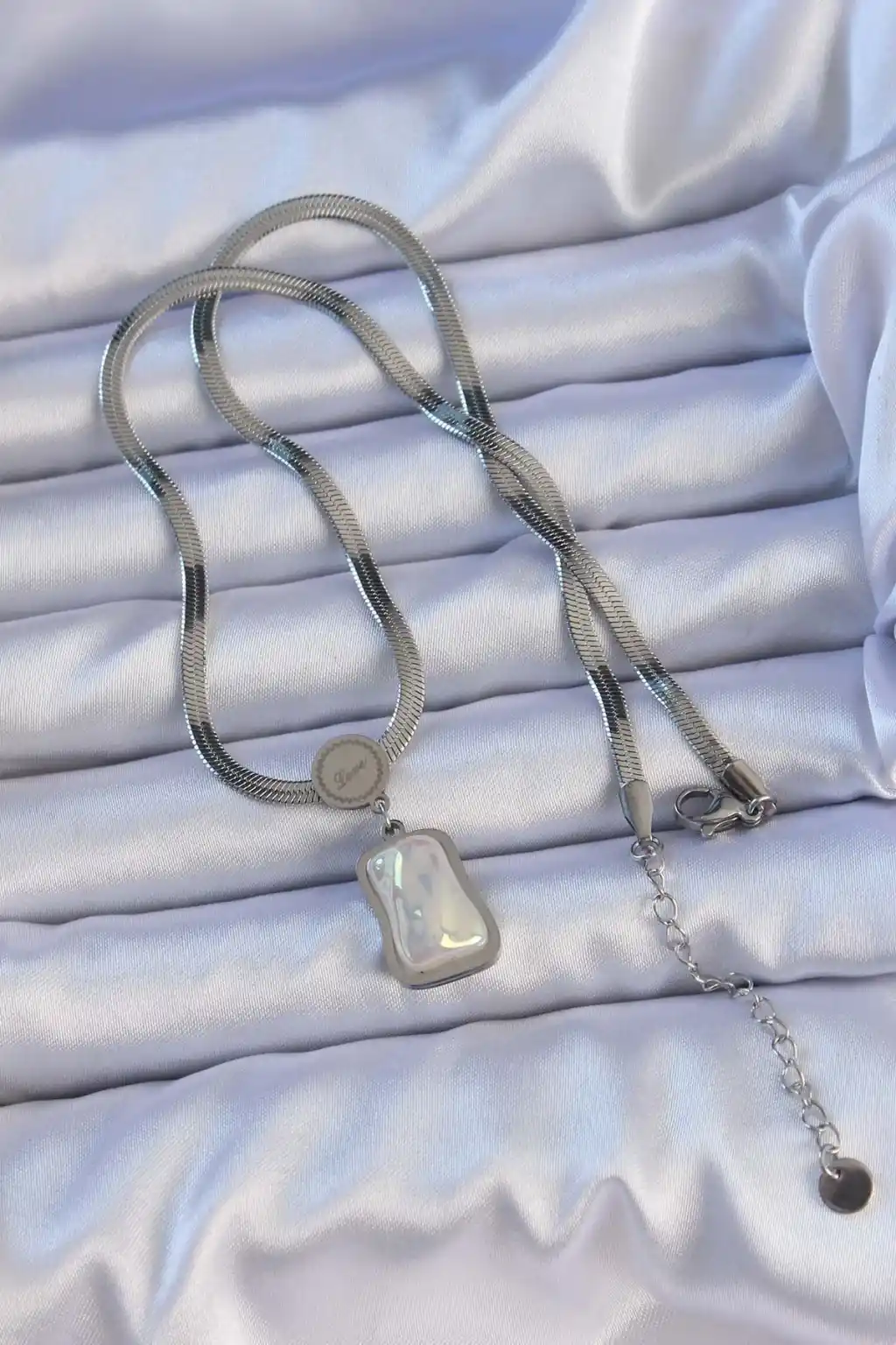 316L Çelik Gümüş Renk İtalyan Zincir Ezme Taşlı Kolye