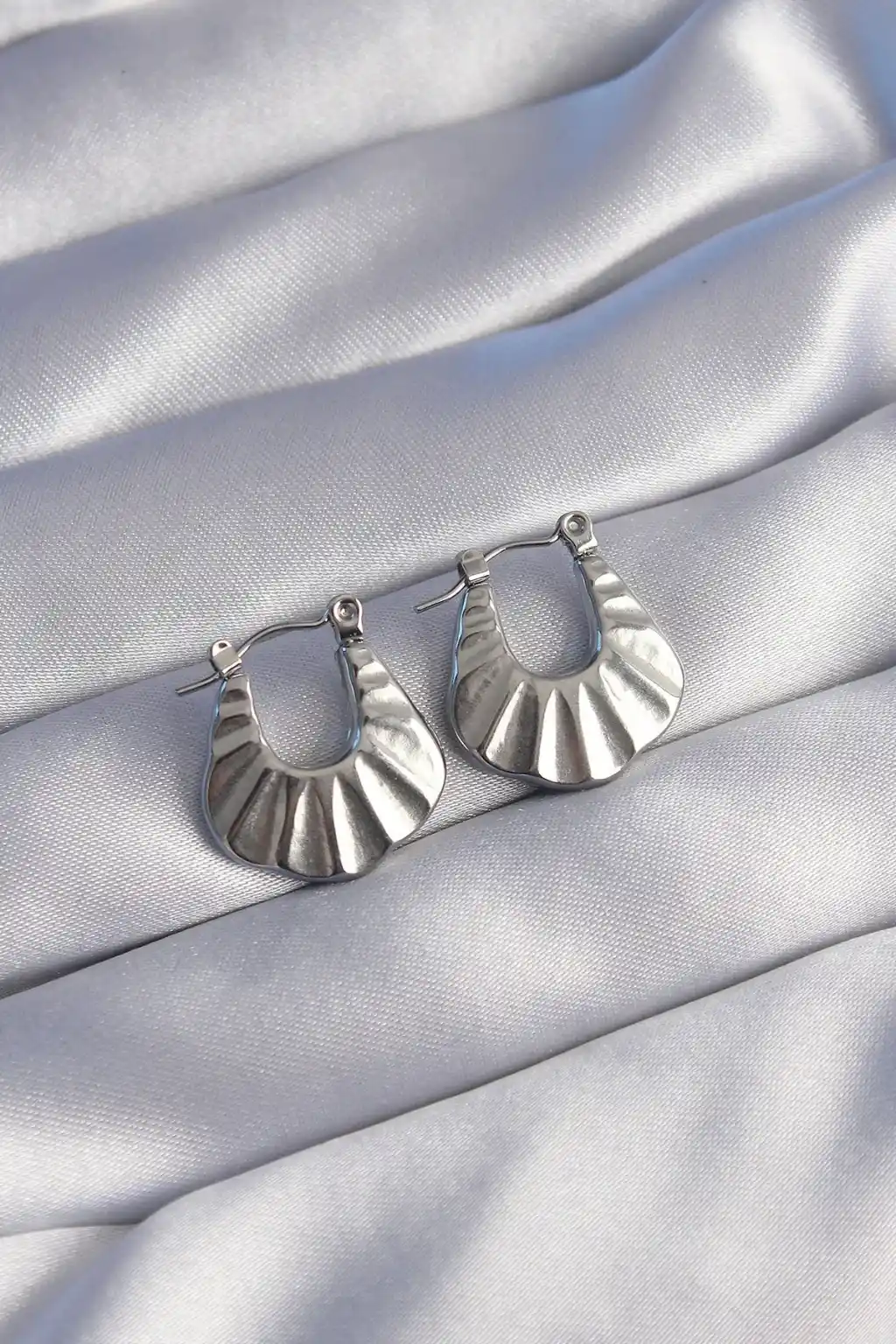 316L Çelik Gümüş Renk Kabartmalı Görünüm Küpe