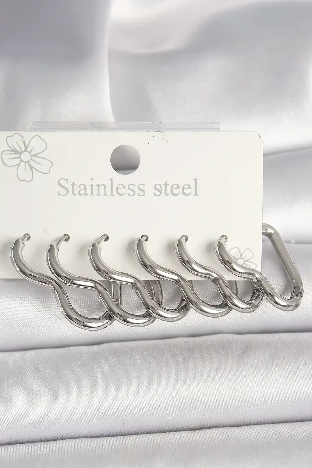 316L Çelik Gümüş Renk Kalp Model Kadın Küpe Seti