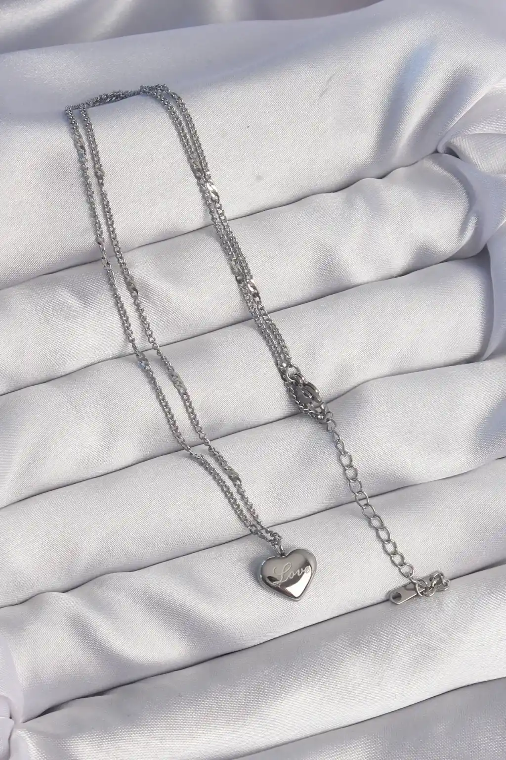 316L Çelik Gümüş Renk Kalp Model Love Kolye