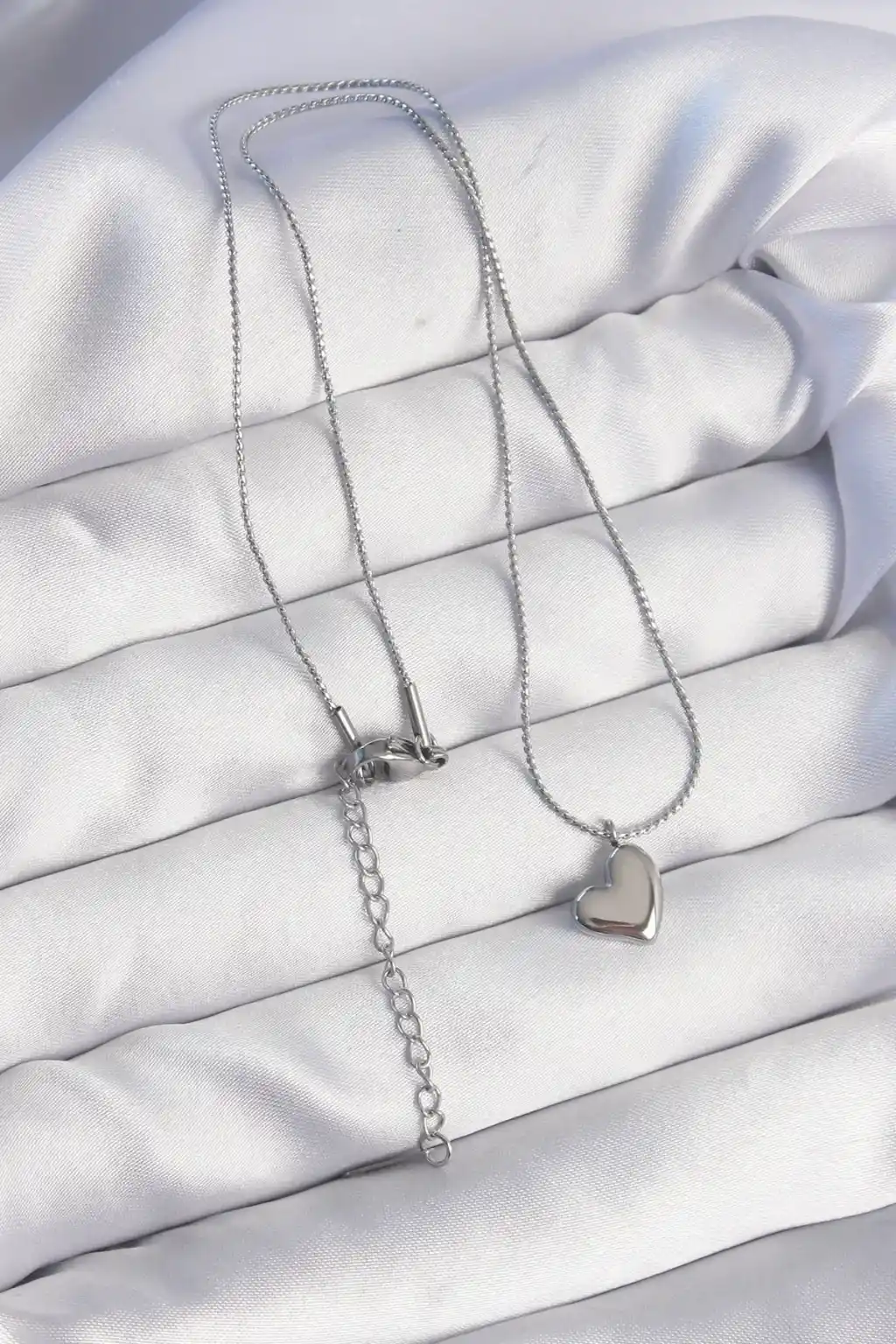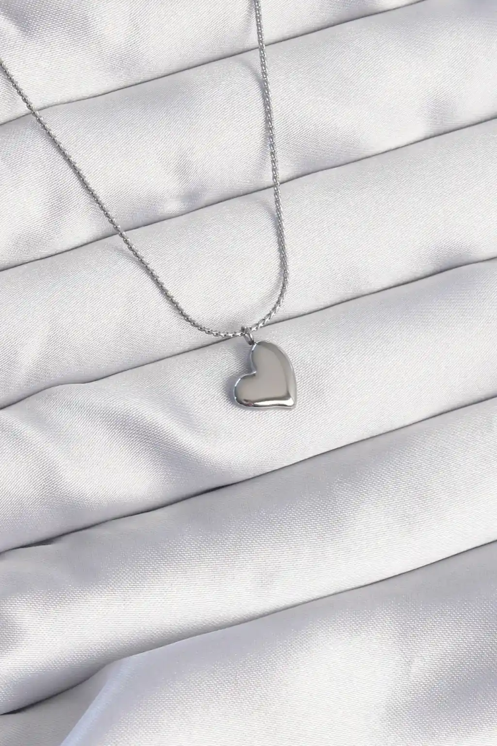 316L Çelik Gümüş Renk Minimal Kalp Tasarımlı Kolye