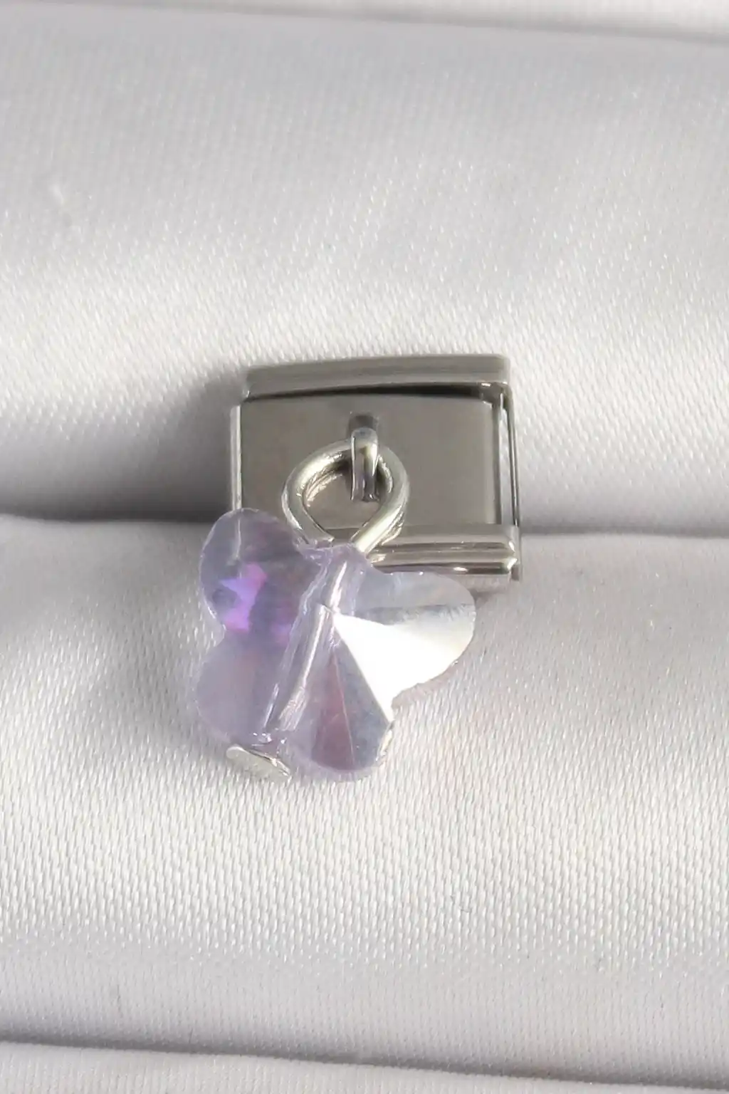 316L Çelik Gümüş Renk Mor Zirkon Taşlı Nomination Charm