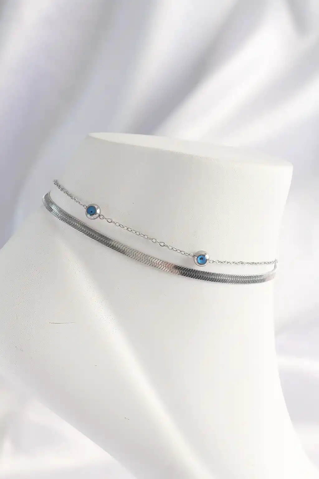 316L Çelik Gümüş Renk Nazar Boncuk Tasarımlı 2li Halhal