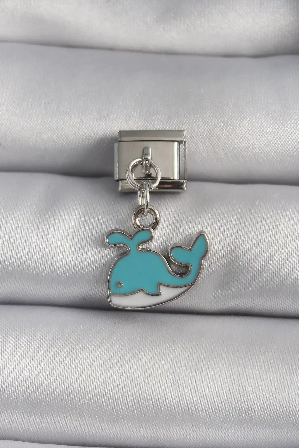 316L Çelik Gümüş Renk Sallantı Mavi Balina Model Nomination Charm