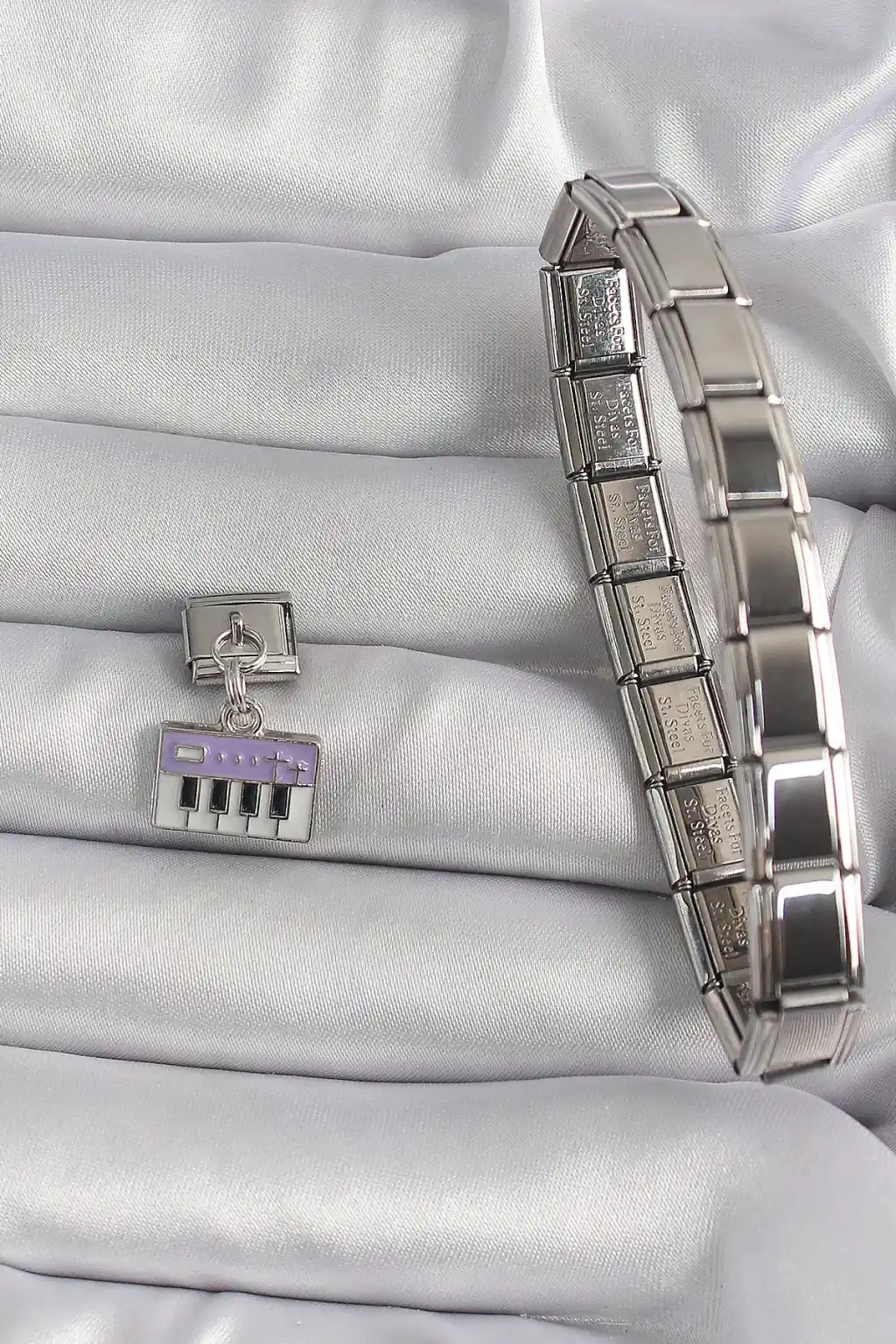 316L Çelik Gümüş Renk Sallantı Mor Piyano Figür Nomination Charm