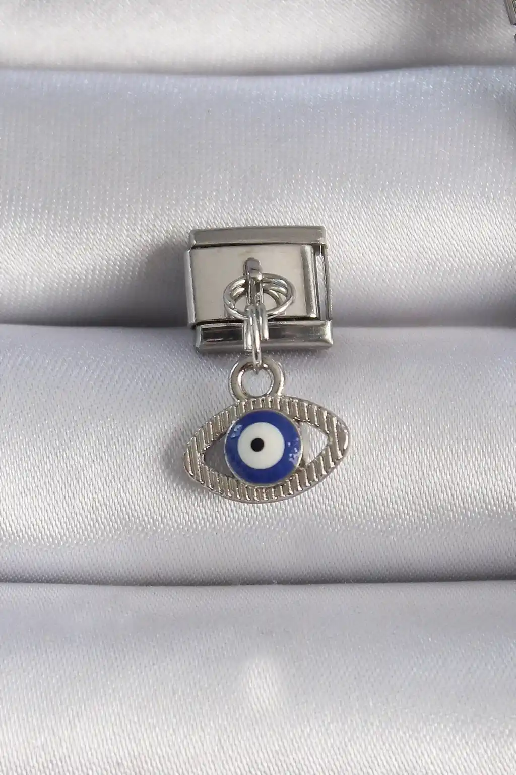 316L Çelik Gümüş Renk Sallantılı Göz Figür Nazar Boncuk Detay Nomination Charm