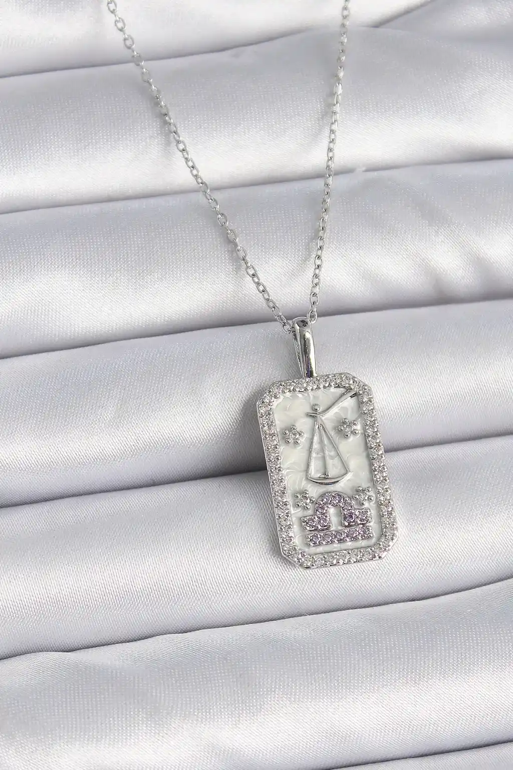316L Çelik Gümüş Renk Terazi Burcu Zirkon Taşlı Kadın Kolye