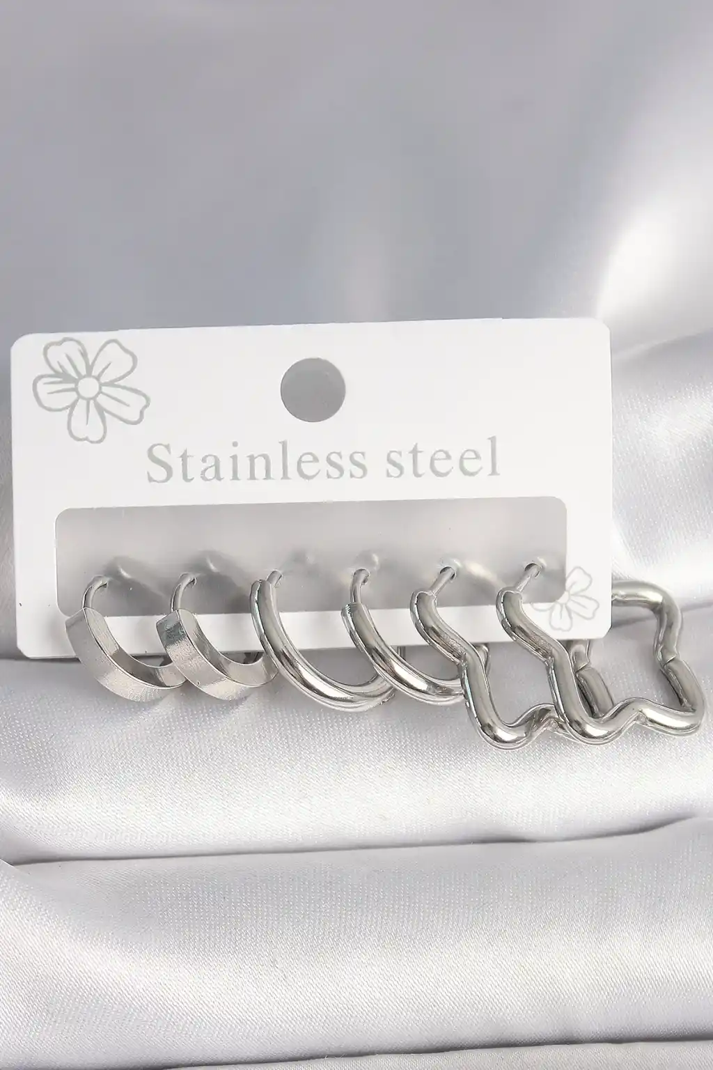 316L Çelik Gümüş Renk Yarım Halka Yıldız Model Kadın Küpe Seti