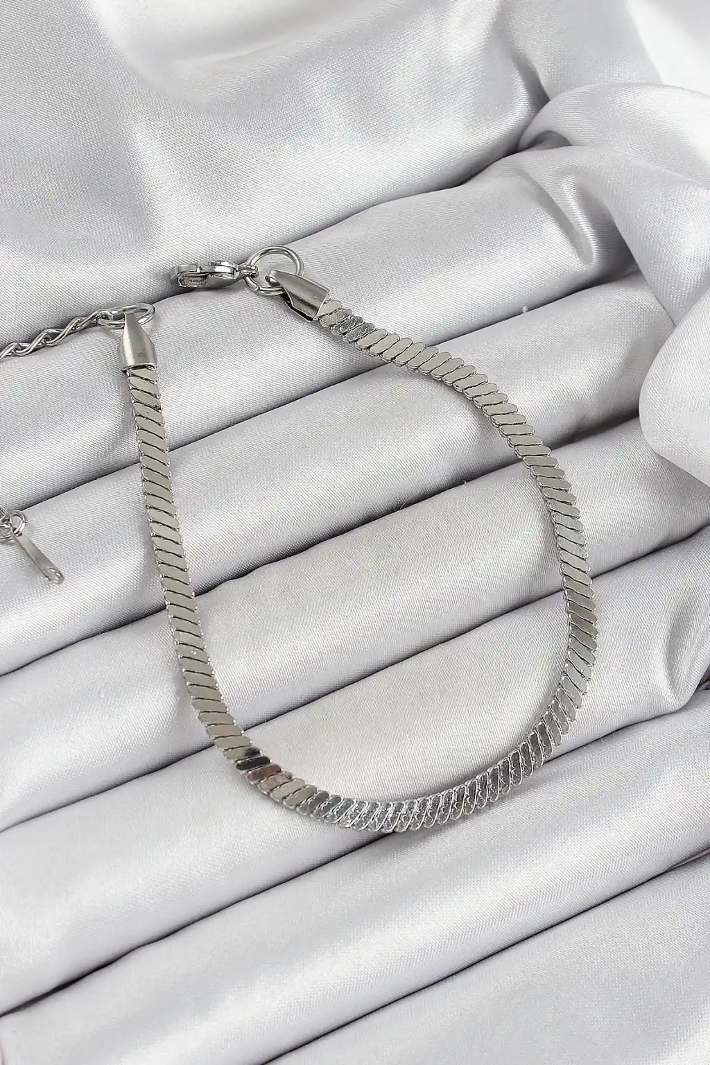 316L Çelik Gümüş Renk Yassı Zincir Model Kadın Bileklik
