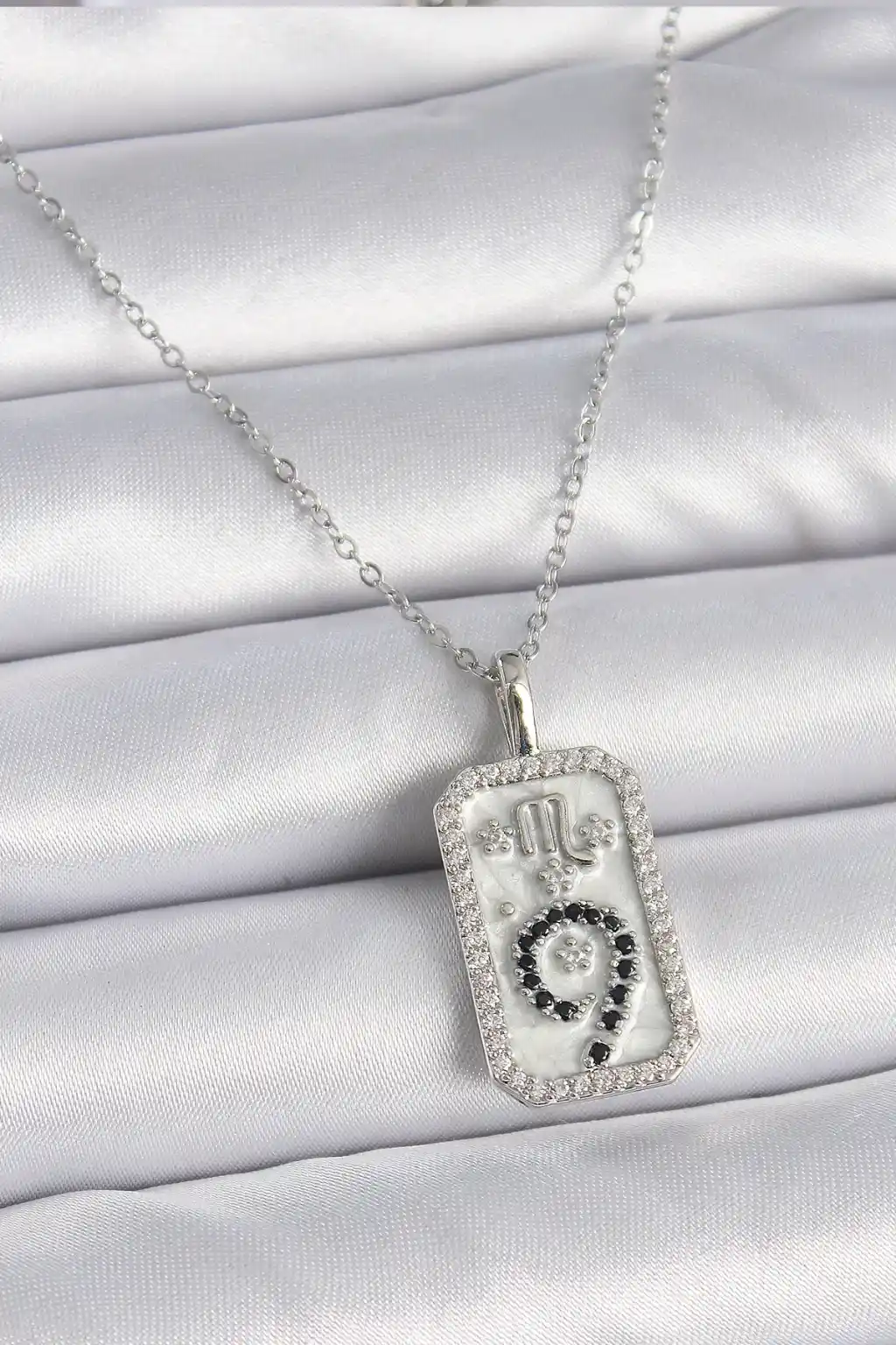 316L Çelik Gümüş Renk Zincir Akrep Burcu Zirkon Taşlı Kadın Kolye